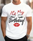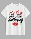 It's My Birthday Eyelashes and Lips Summer Cotton Graphic T Shirt - Casual Chic, Short Sleeve, Soft Fabric, Comfortable Fit
