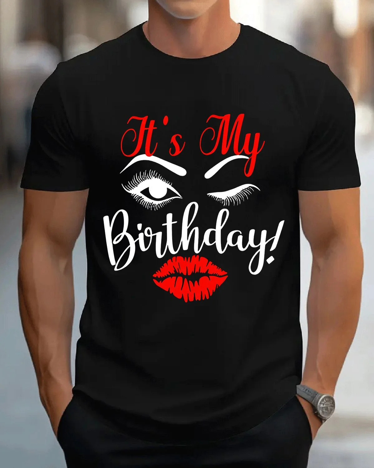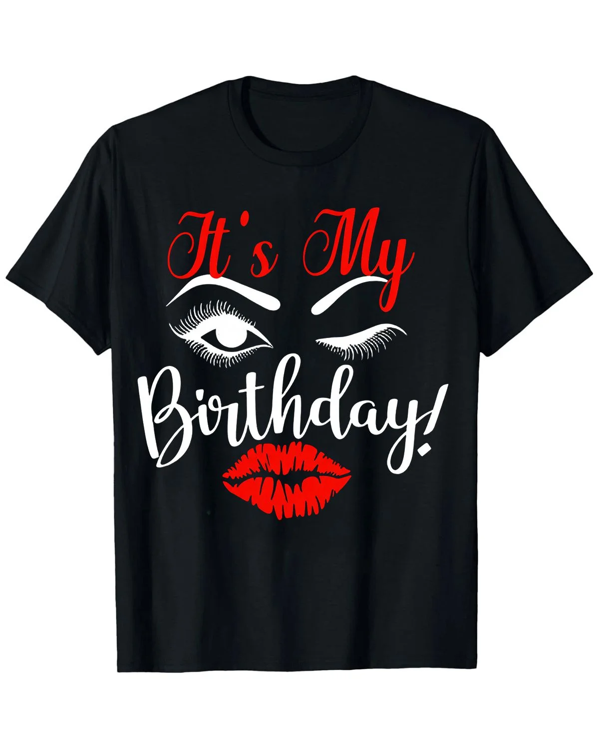 It's My Birthday Eyes and Red Lips Summer Cotton Graphic T Shirt - Trendy Chic, Short Sleeve, Soft Fabric, Comfortable Fit