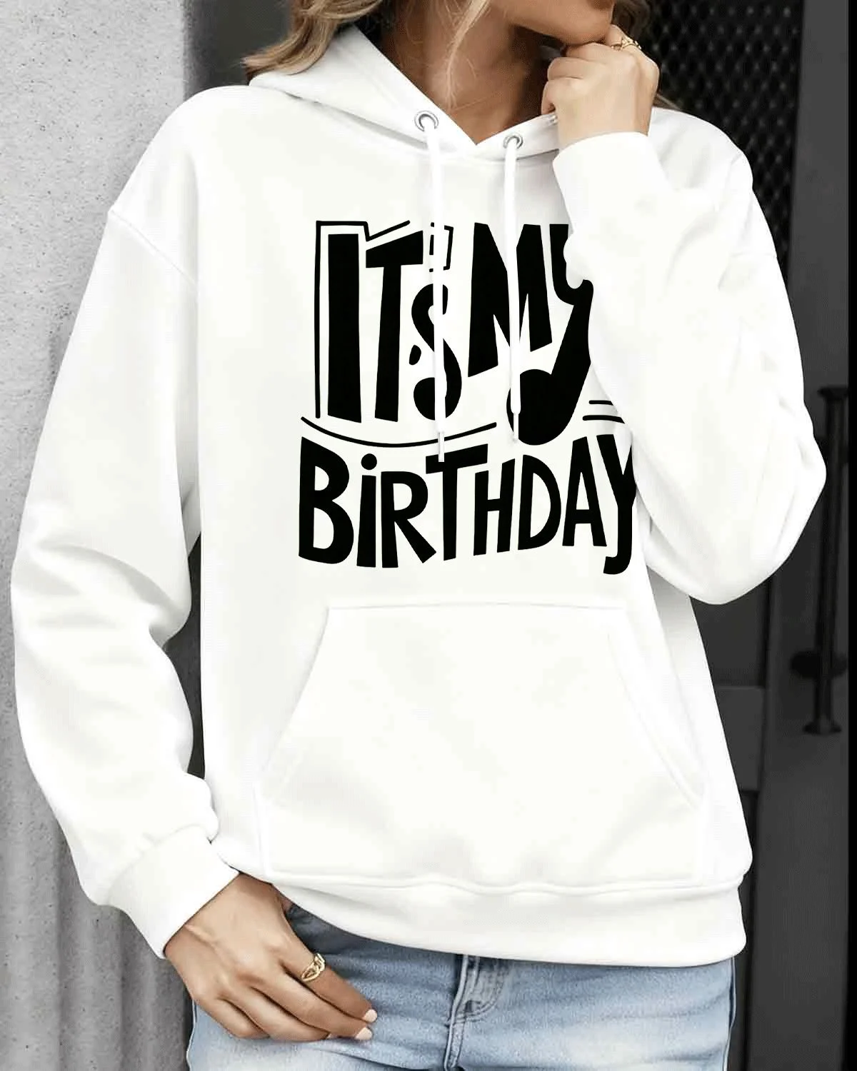 It's My Birthday Neon Text Cozy Graphic Hoodie for Men and Women - Casual Graphic, Long Sleeve, Soft Fabric, Comfortable Fit