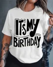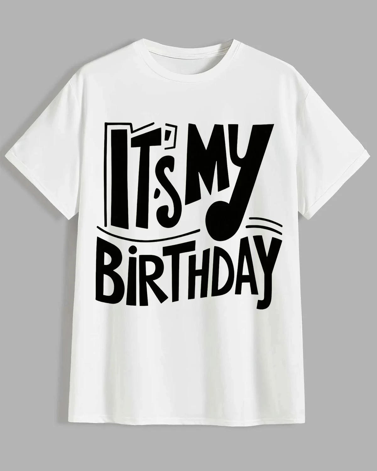 It's My Birthday Neon Text Summer Cotton Graphic T Shirt - Casual Graphic, Short Sleeve, Soft Fabric, Comfortable Fit