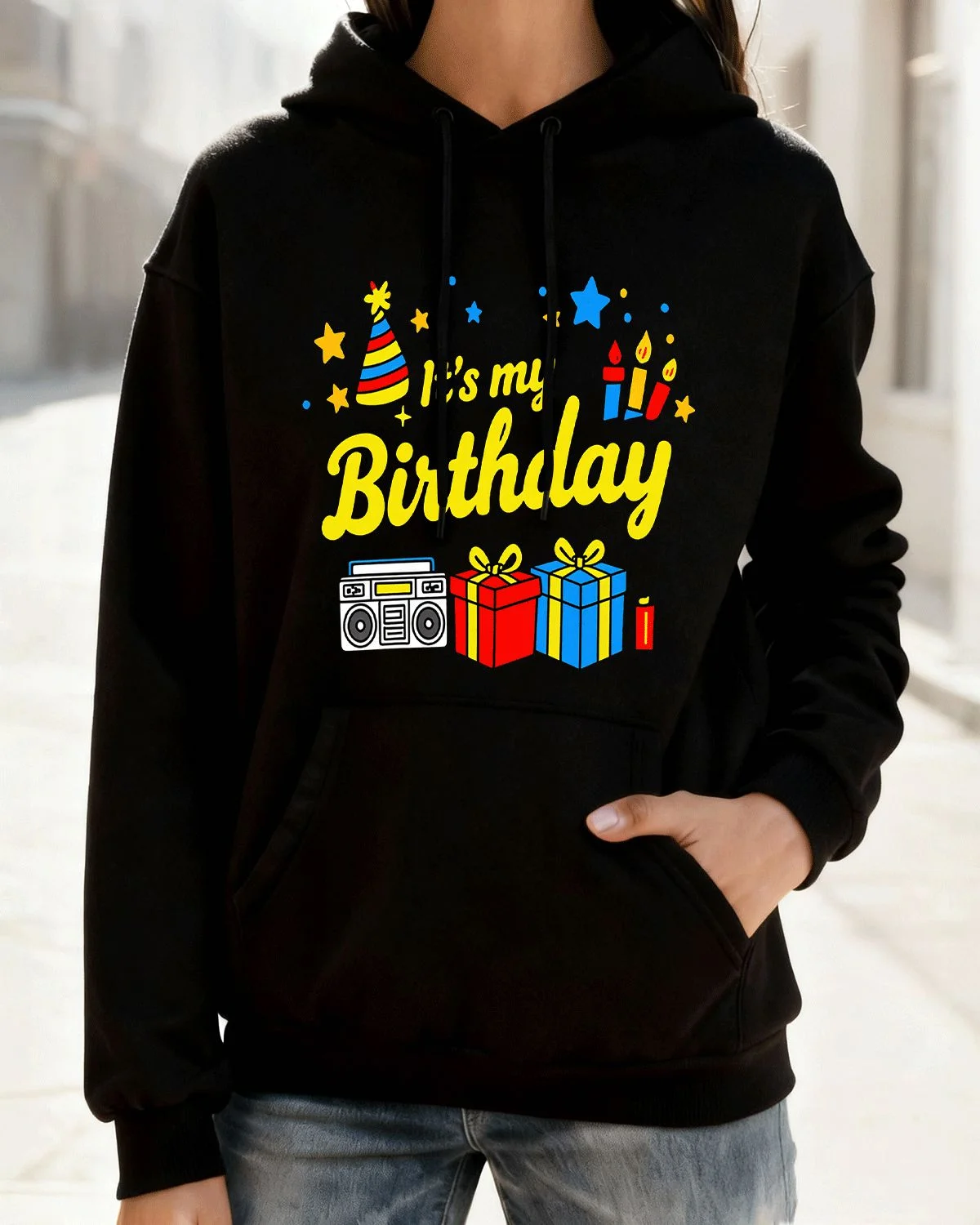 It's My Birthday Party Gifts and Music Cozy Graphic Hoodie for Men and Women - Funny Retro, Long Sleeve, Soft Fabric, Comfortable Fit