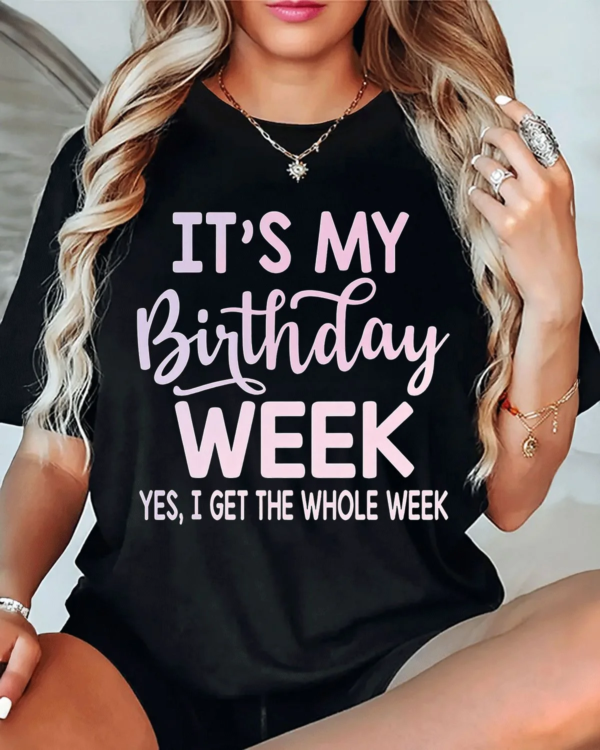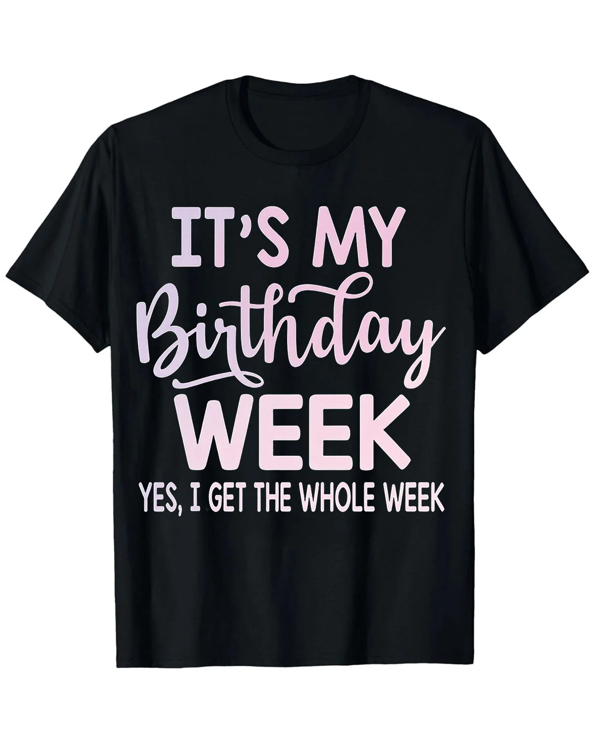 It's My Birthday Week Yes I Get the Whole Week Summer Cotton Graphic T Shirt - Funny Casual, Short Sleeve, Soft Fabric, Comfortable Fit