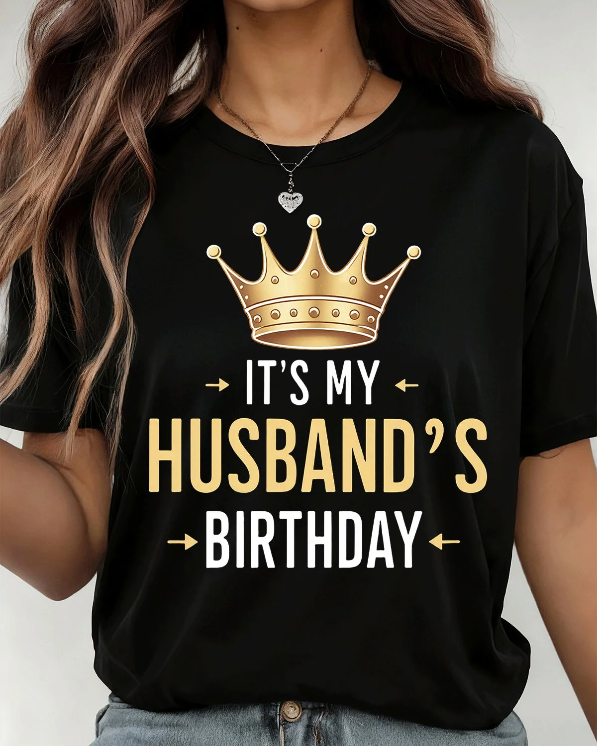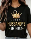 It's My Husband's Birthday Crown Summer Cotton Graphic T Shirt - Casual Funny, Short Sleeve, Soft Fabric, Comfortable Fit