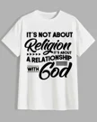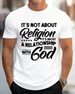 It's Not About Religion Relationship With God Summer Cotton Graphic T Shirt-Casual Vintage,Short Sleeve,Soft Fabric,Comfortable Fit