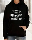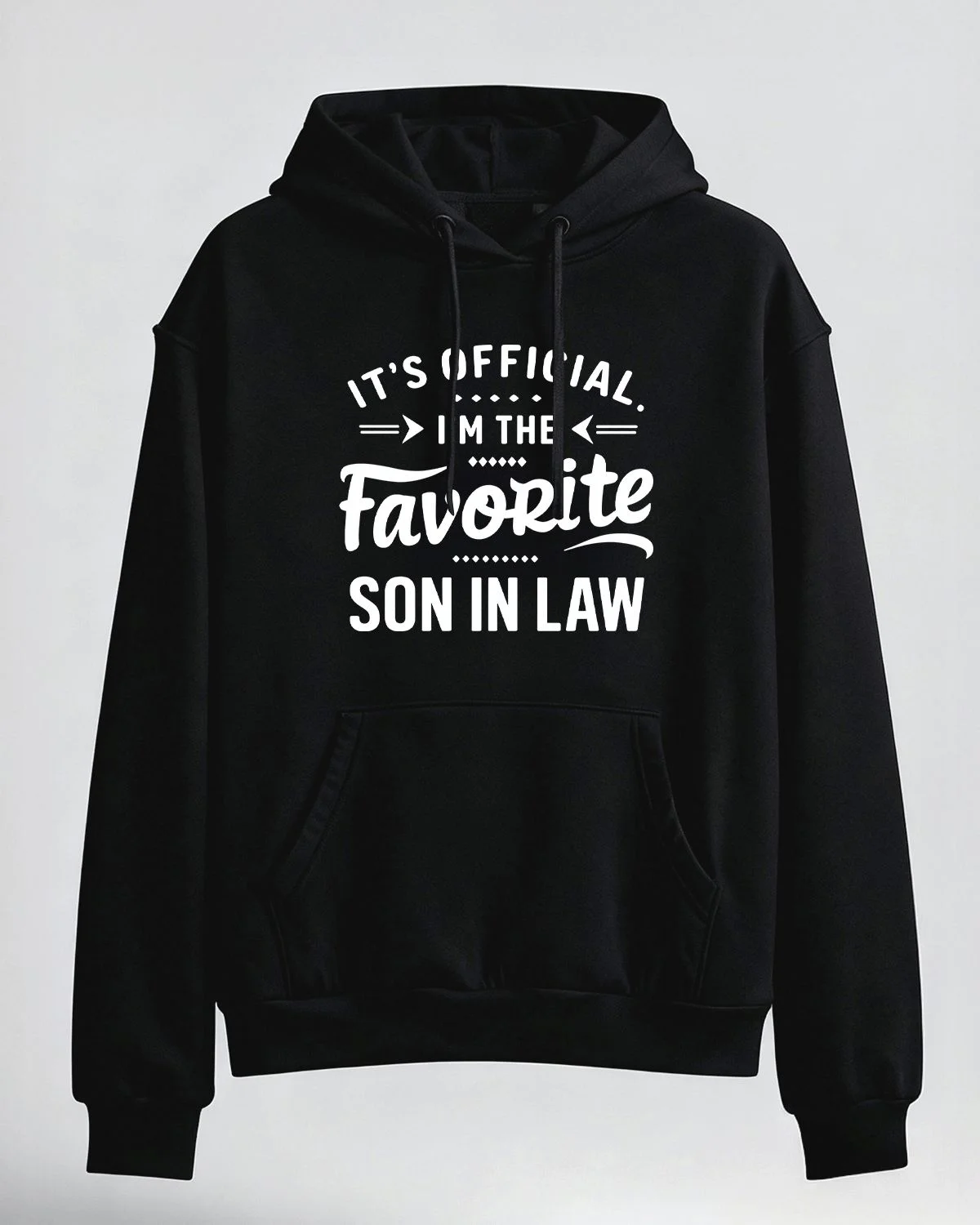 It's Official I'm The Favorite Son In Law Cozy Cotton Graphic Hoodie with Pocket-Casual Funny,Long Sleeve,Soft Fabric,Comfortable Fit