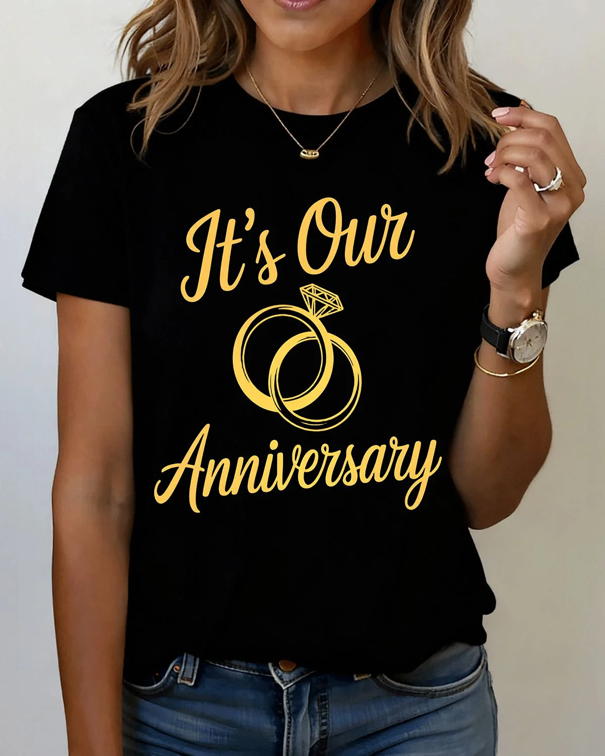 It's Our Anniversary Rings Summer Cotton Graphic T Shirt-Casual Classic,Short Sleeve,Soft Fabric,Comfortable Fit