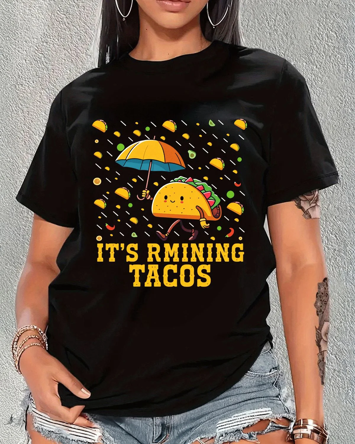 It's Raining Tacos Summer Cotton Graphic T Shirt - Casual Funny,Short Sleeve,Soft Fabric,Comfortable Fit