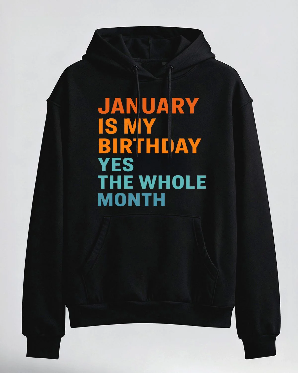 January Is My Birthday Whole Month Cozy Graphic Hoodie for Men and Women - Casual Funny, Long Sleeve, Soft Fabric, Comfortable Fit