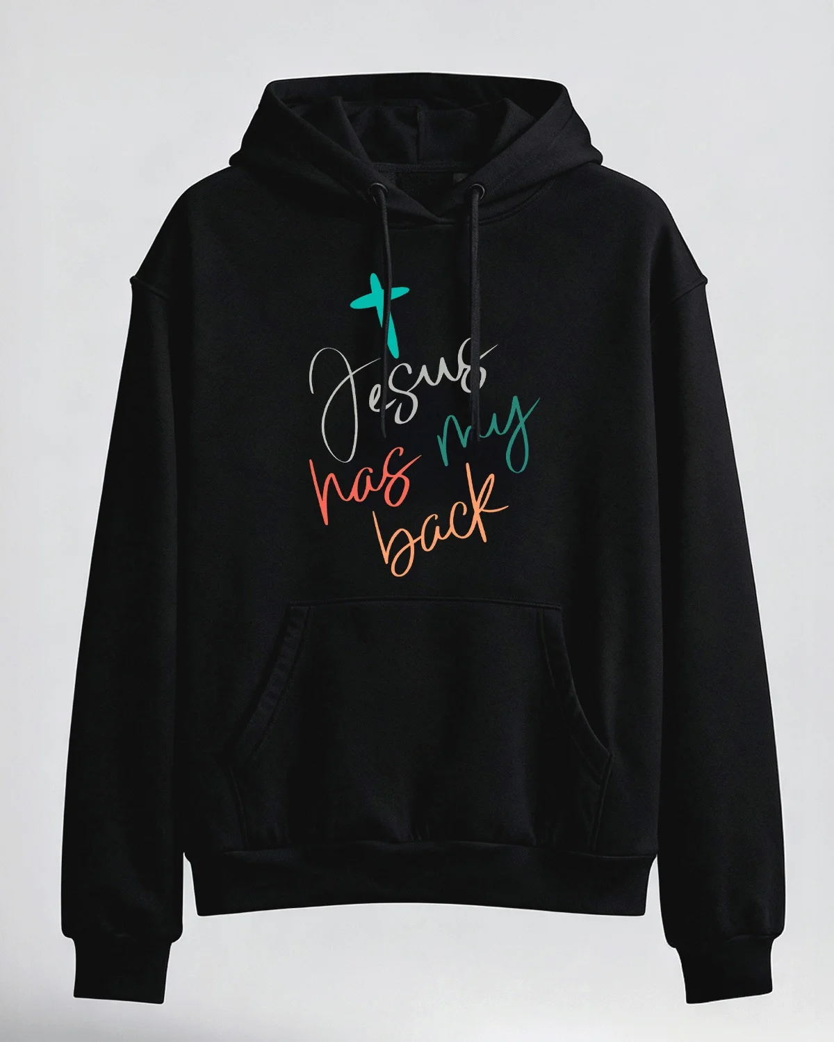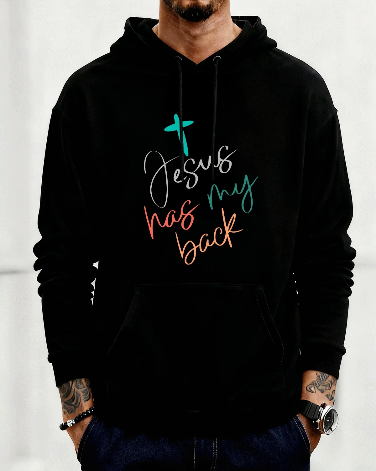 Jesus Has My Back Cozy Cotton Graphic Hoodie-Casual Vintage,Long Sleeves,Soft Fabric,Comfortable Fit