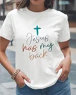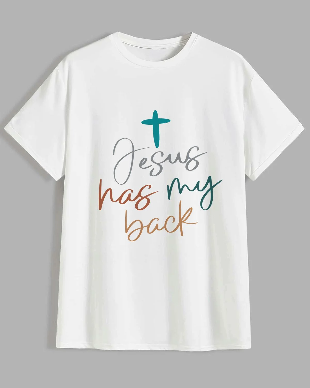 Jesus Has My Back Summer Cotton Graphic T Shirt - Casual Vintage,Short Sleeve,Soft Fabric,Comfortable Fit