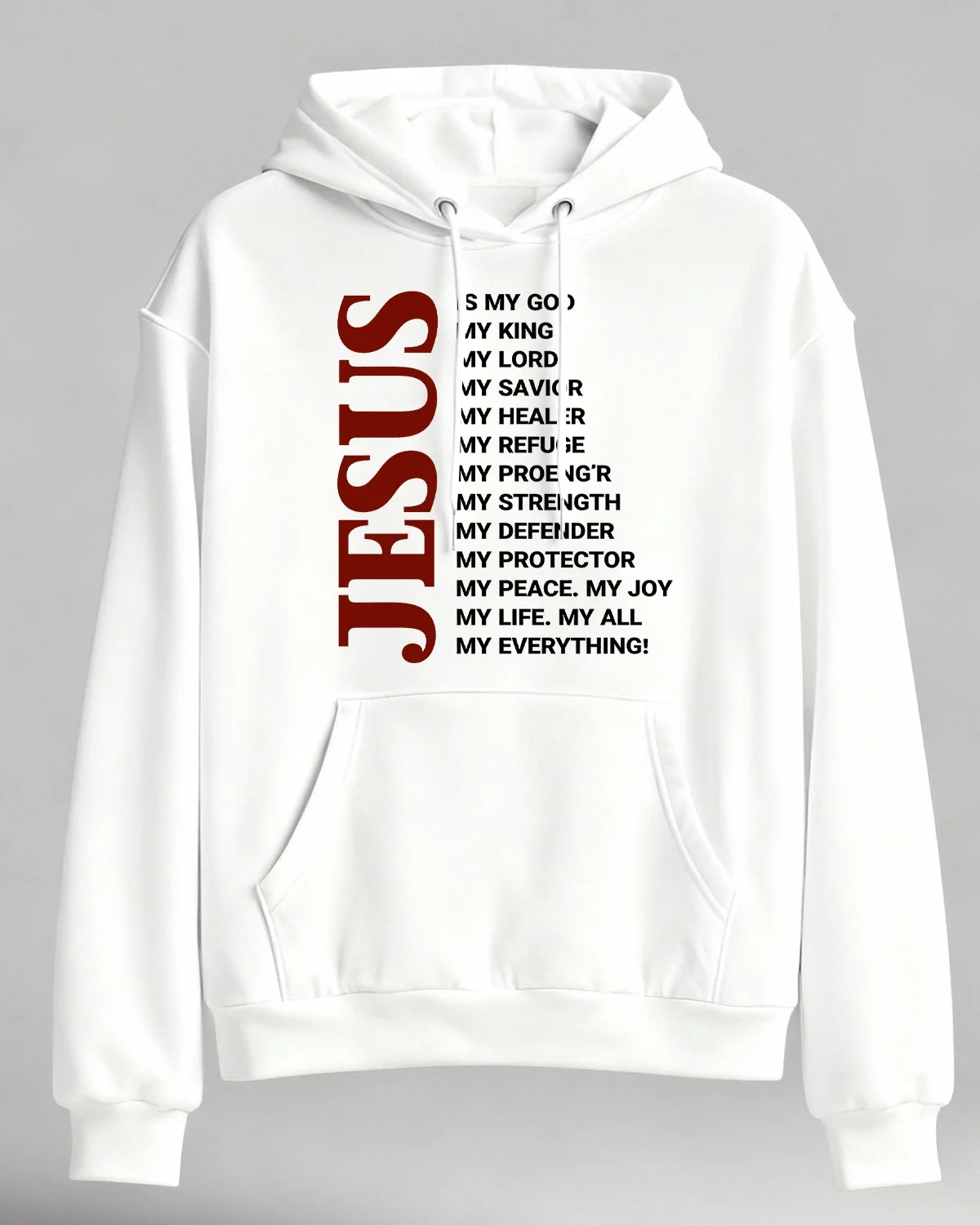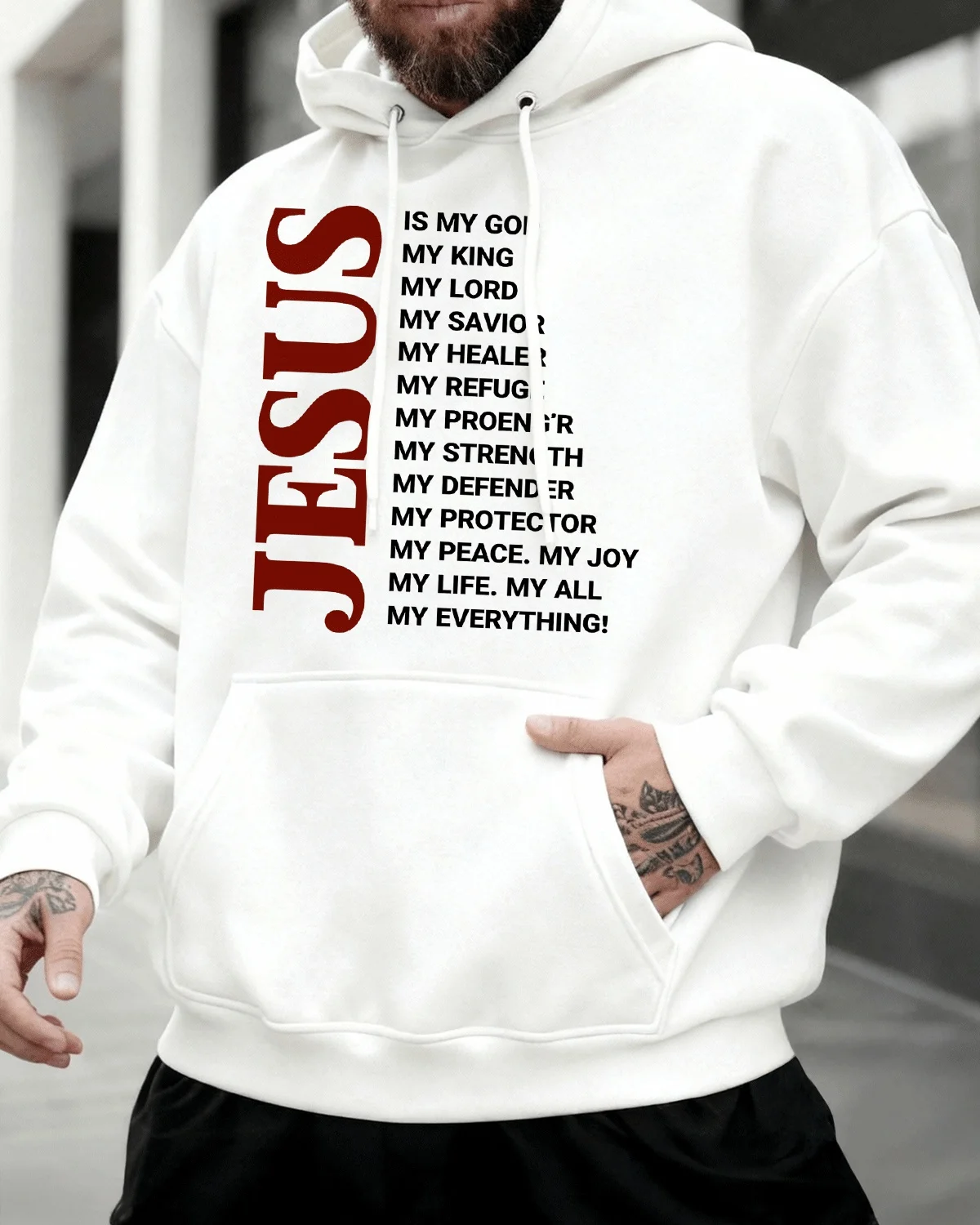 Jesus Is My God My King My Lord Cozy Cotton Graphic Hoodie-Casual Vintage,Long Sleeves,Soft Fabric,Comfortable Fit