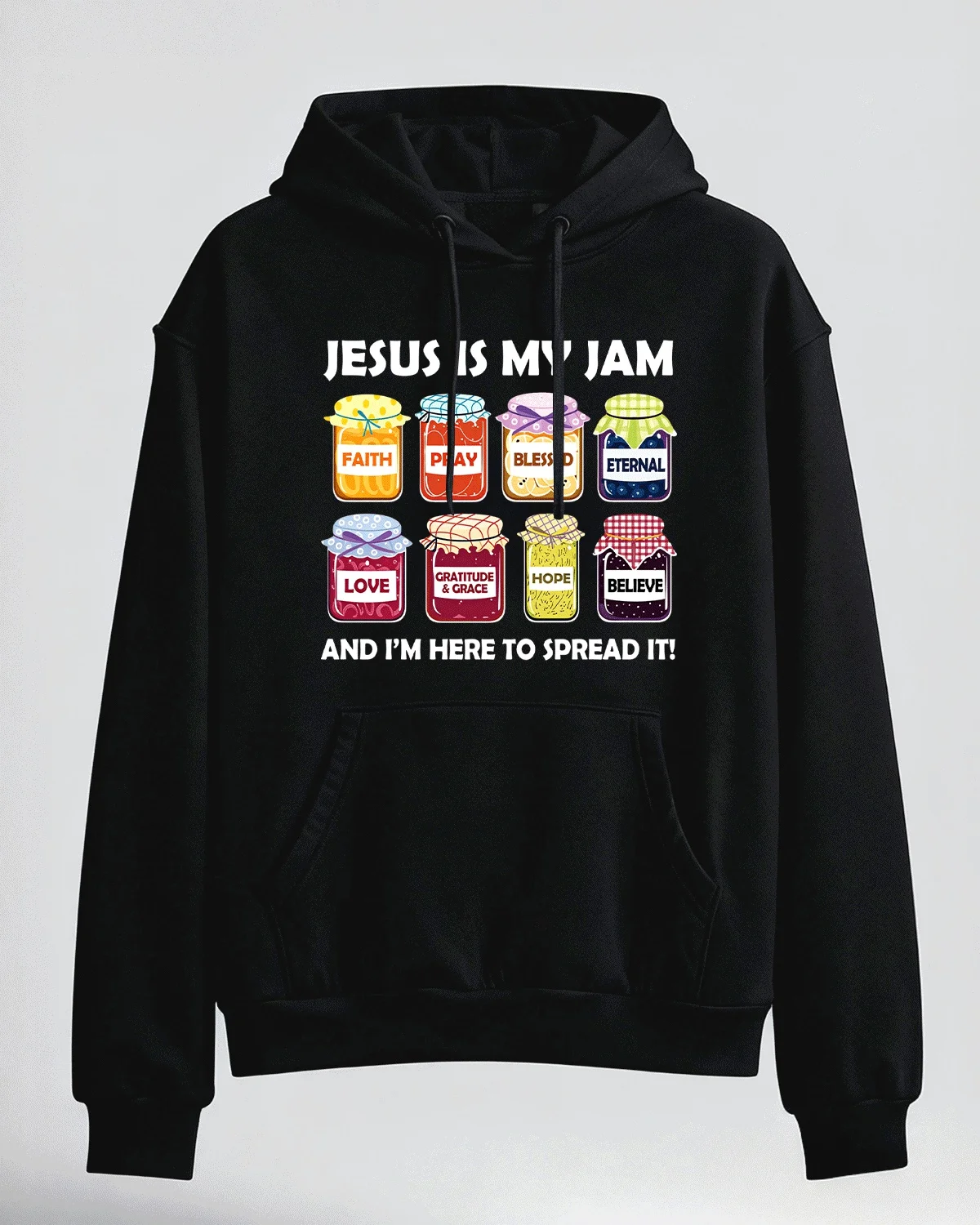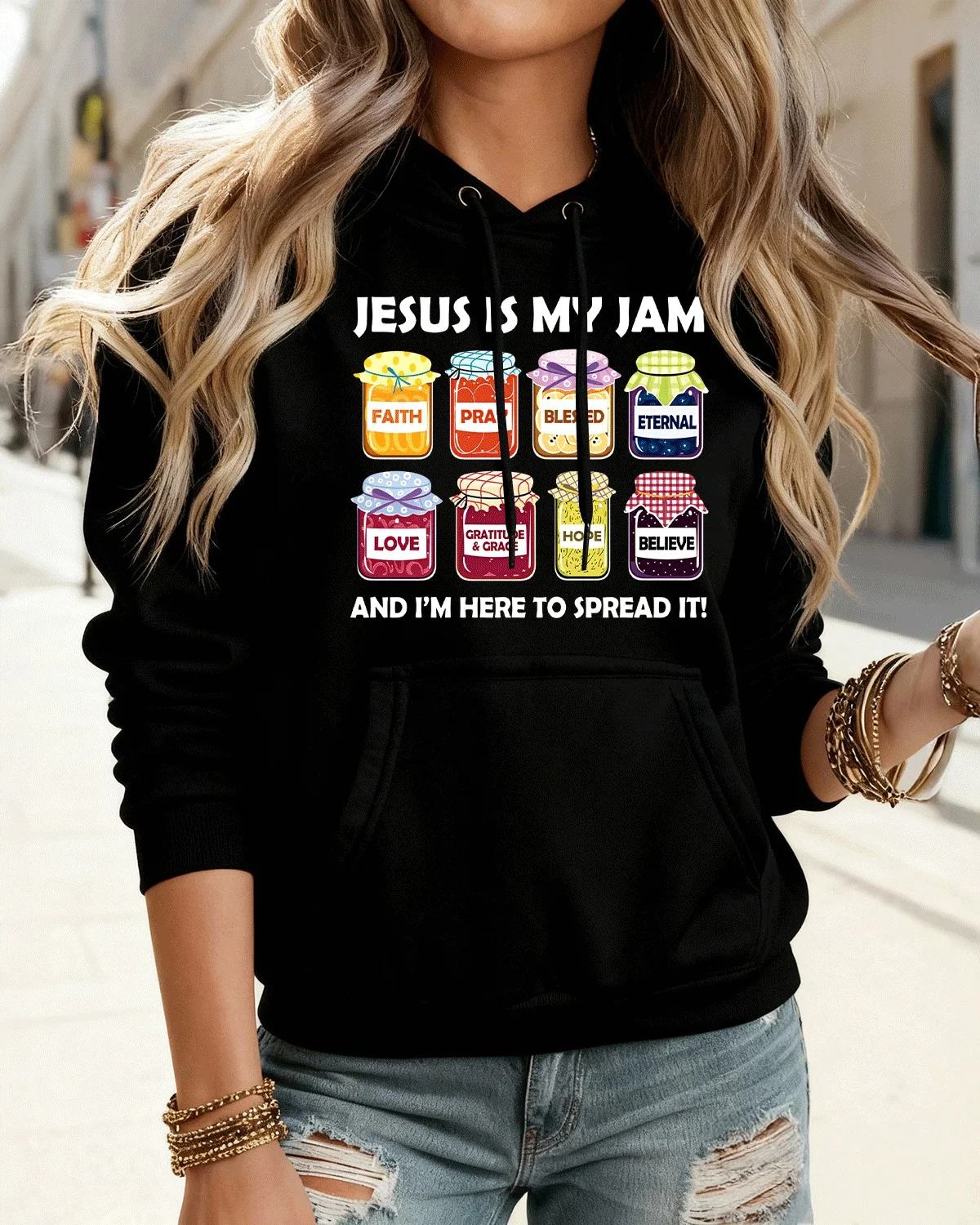 Jesus Is My Jam Faith Pray Blessed Hope Cozy Cotton Graphic Hoodie-Casual Funny,Long Sleeves,Soft Fabric,Comfortable Fit