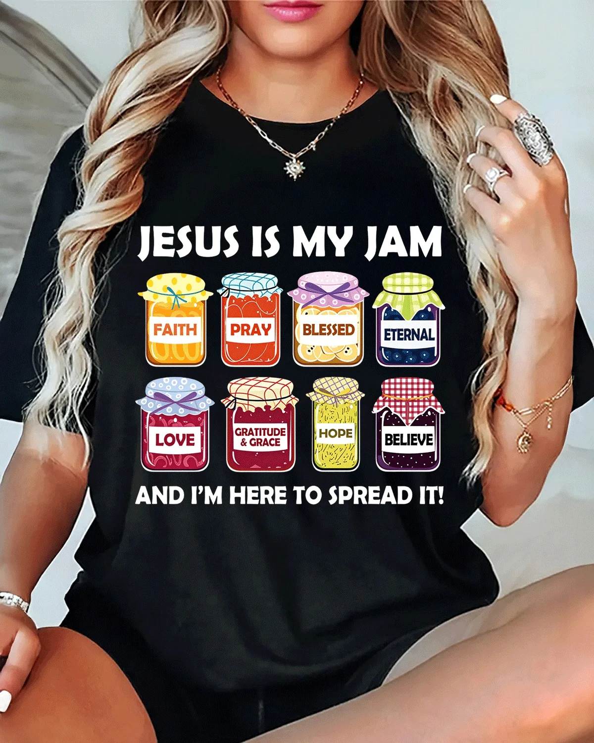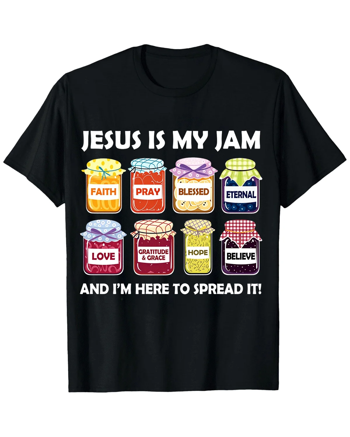 Jesus Is My Jam Faith Pray Blessed Hope Summer Cotton Graphic T Shirt-Casual Funny,Short Sleeve,Soft Fabric,Comfortable Fit