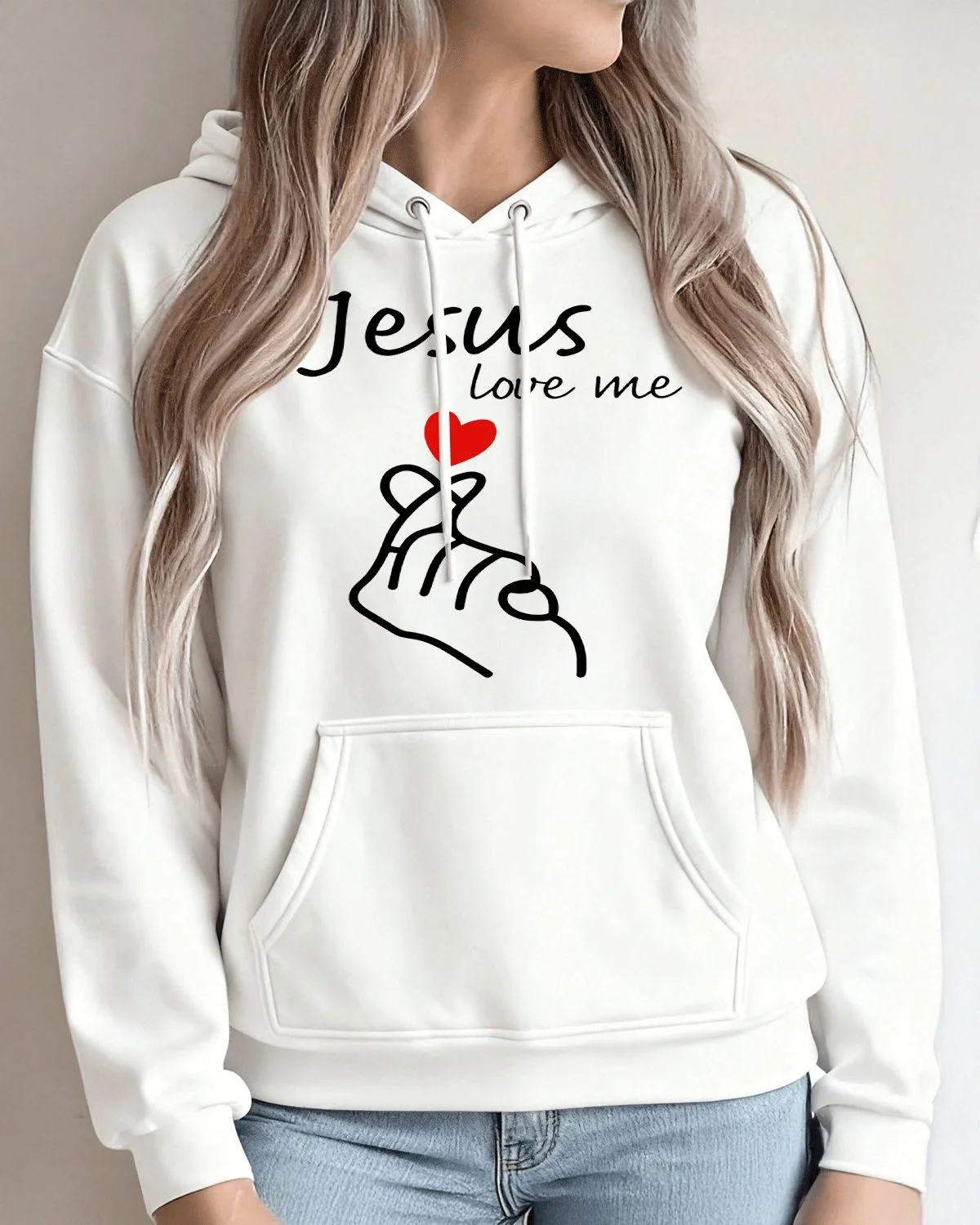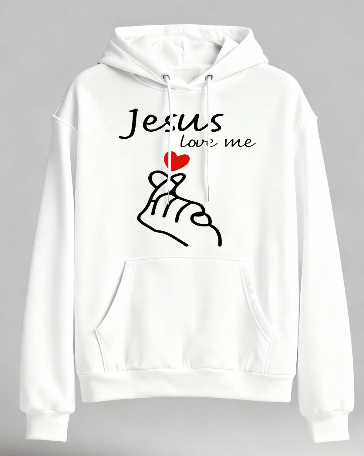Jesus Love Me Heart Hand Sign Cozy Graphic Hoodie for Men and Women - Casual Vintage, Long Sleeve, Soft Fabric, Comfortable Fit