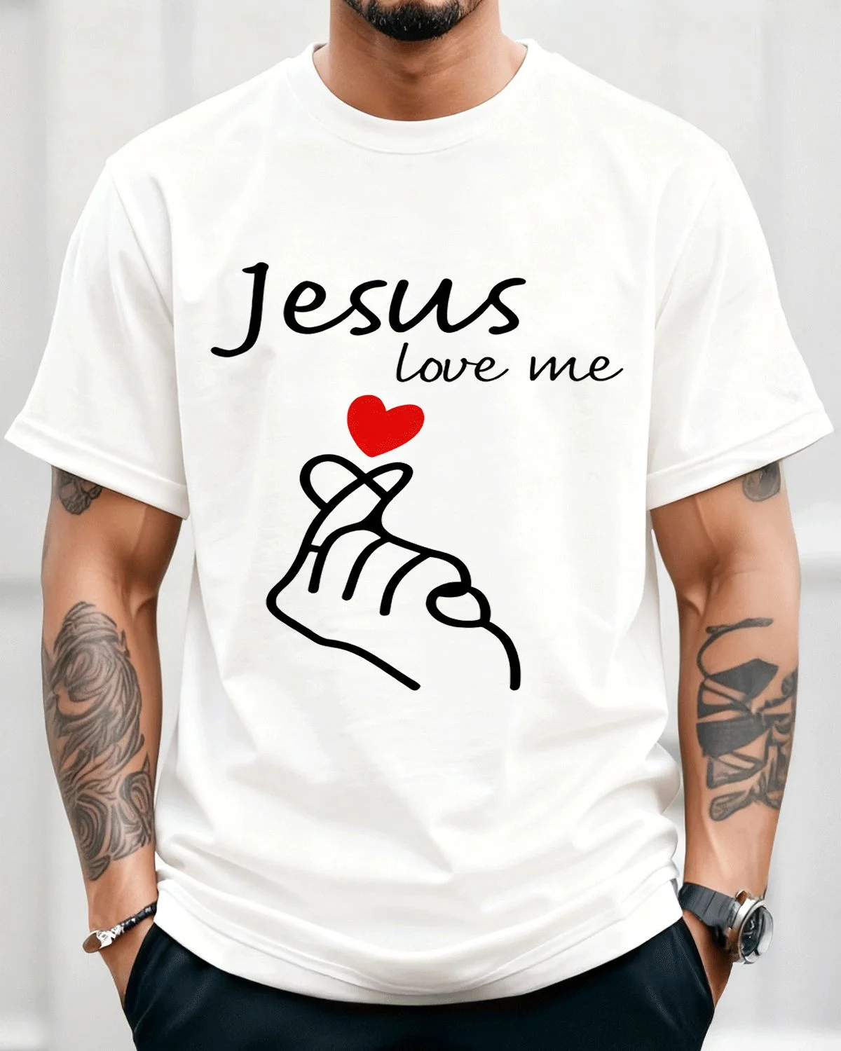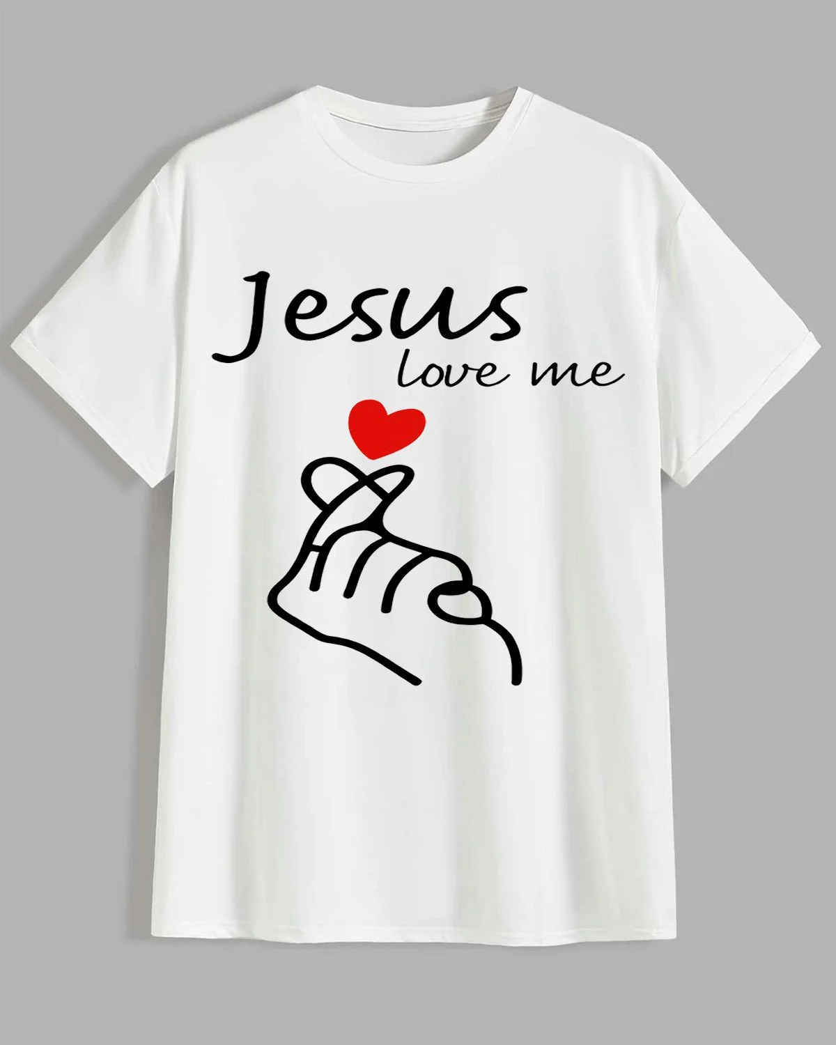 Jesus Love Me Heart Hand Sign Summer Cotton Graphic T Shirt - Casual Vintage, Short Sleeve, Soft Fabric, Comfortable Fit