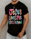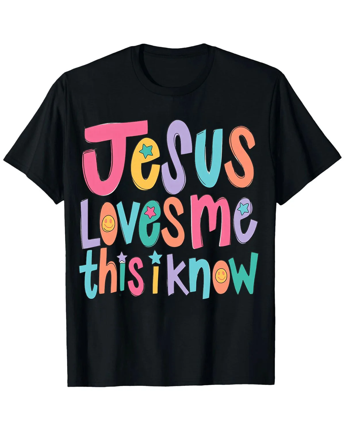Jesus Loves Me This I Know Summer Cotton Graphic T Shirt - Casual Artistic, Short Sleeve, Soft Fabric, Comfortable Fit