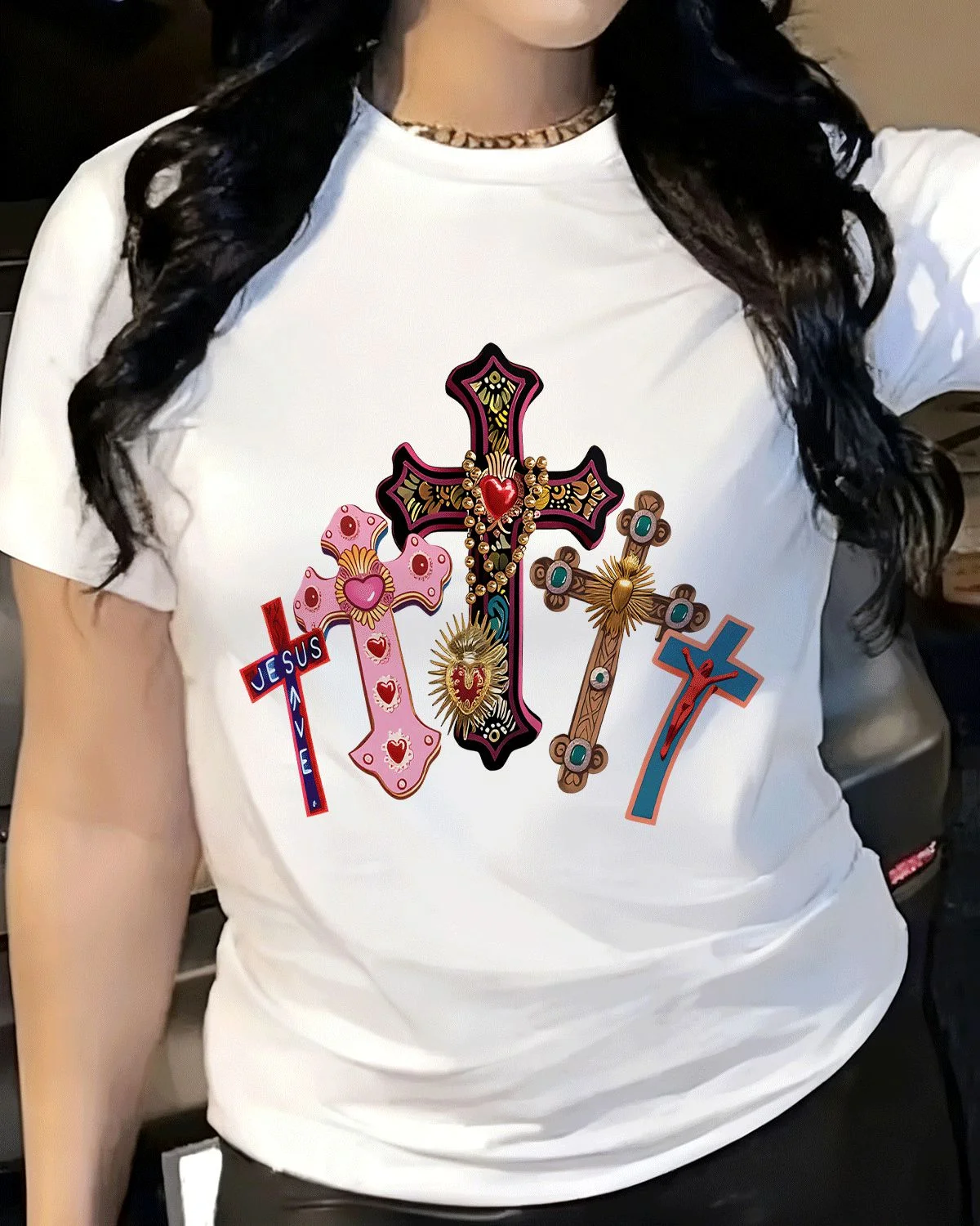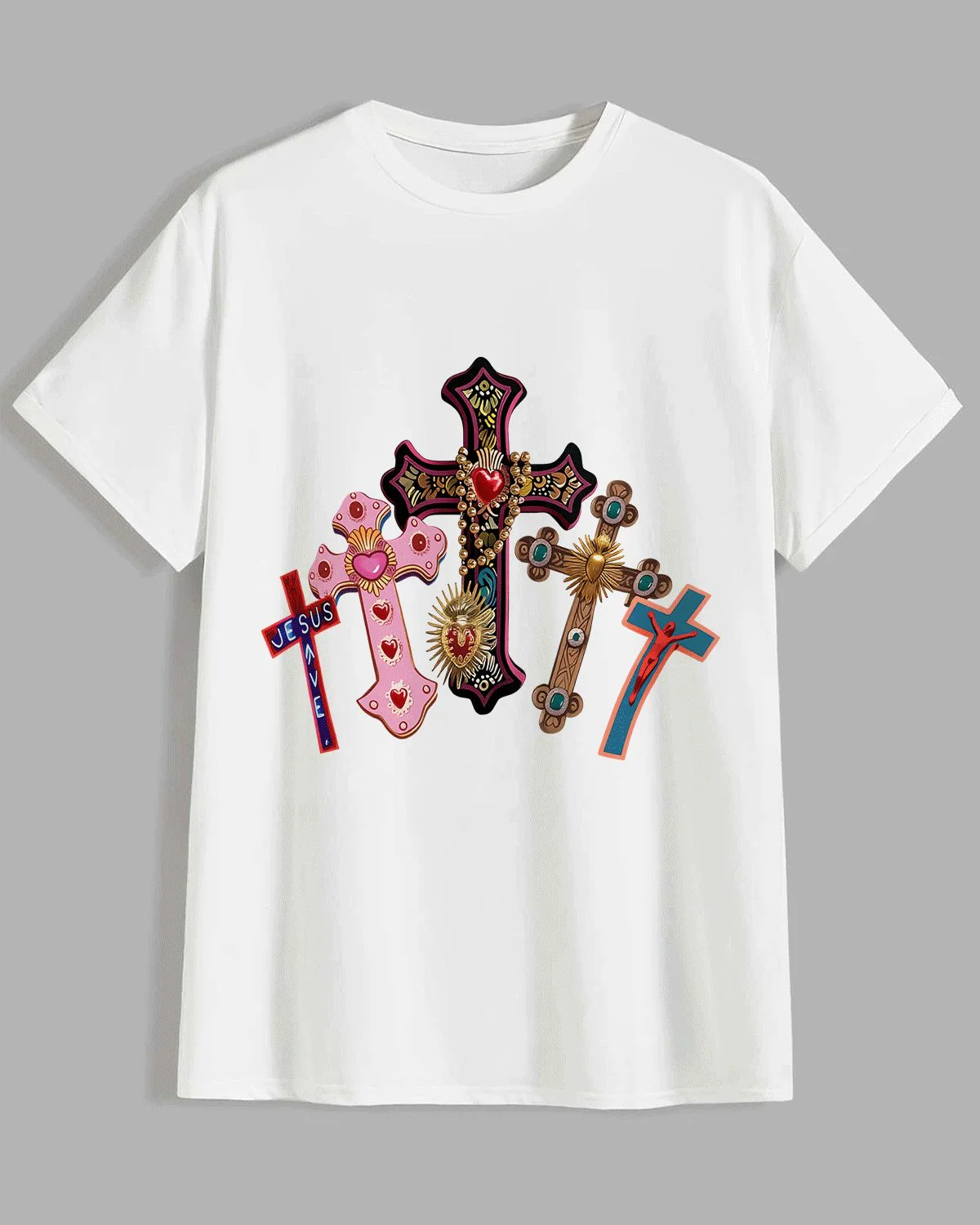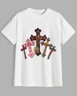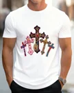 Jesus Saves Colorful Crosses Summer Cotton Graphic T Shirt - Casual Artistic,Short Sleeve,Soft Fabric,Comfortable Fit