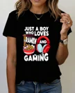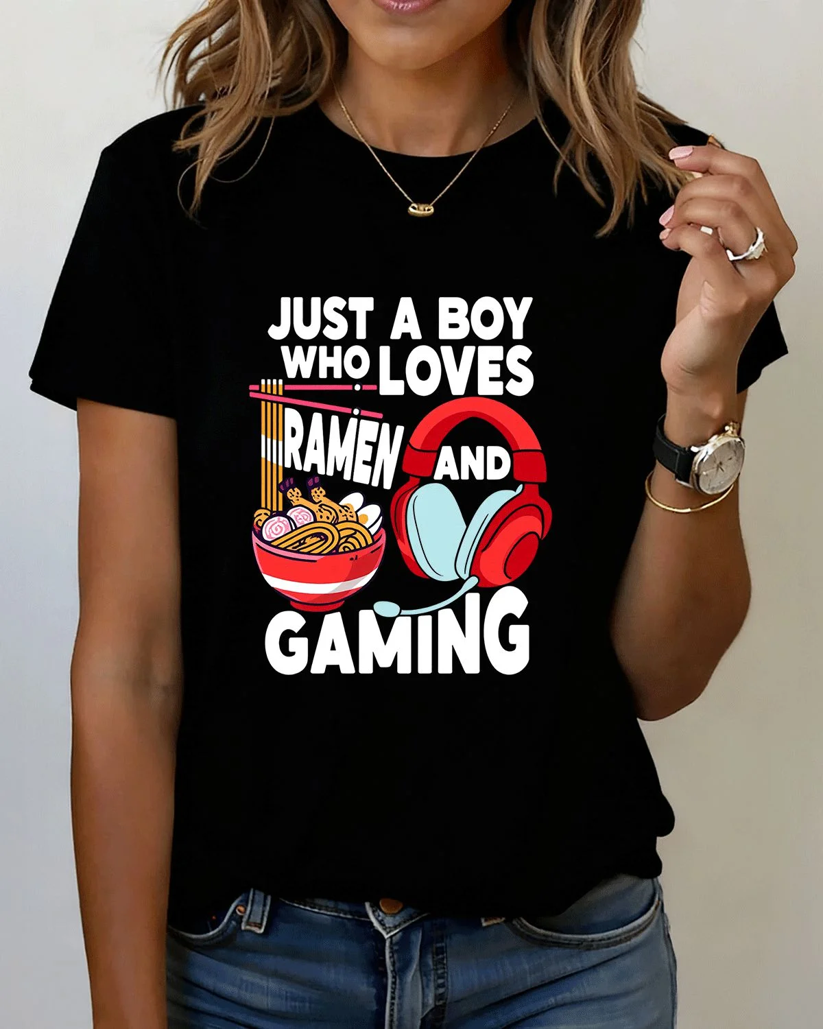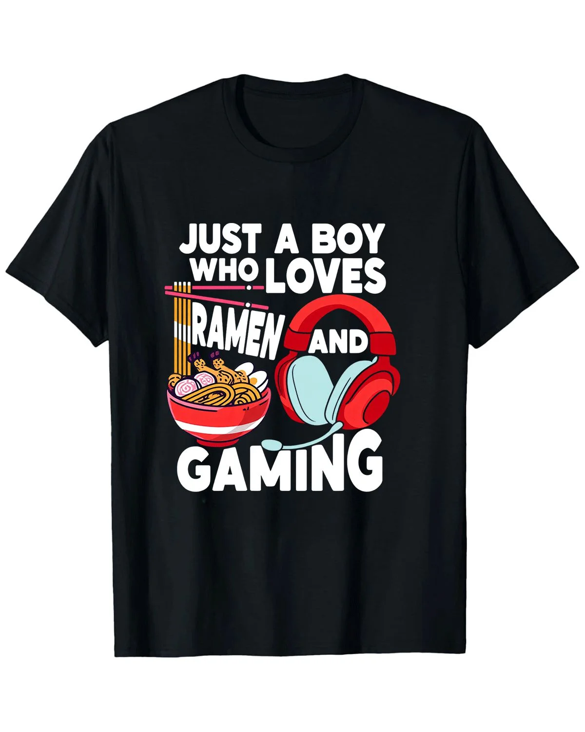Just a Boy Who Loves Ramen and Gaming Summer Cotton Graphic T Shirt - Funny Casual,Short Sleeve,Soft Fabric,Comfortable Fit
