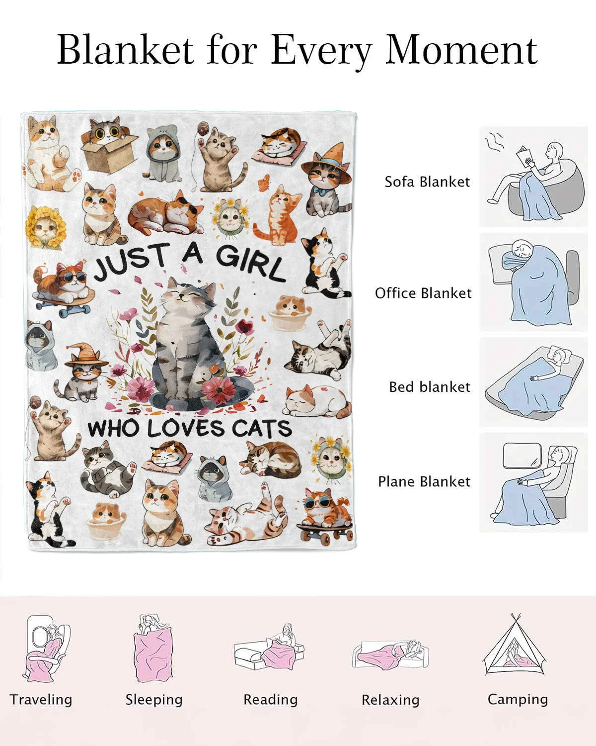 Just a Girl Who Loves Cats Gift Blanket-Cozy Cute,Super Soft,Warm,Lightweight,For Couch,Bedroom Use
