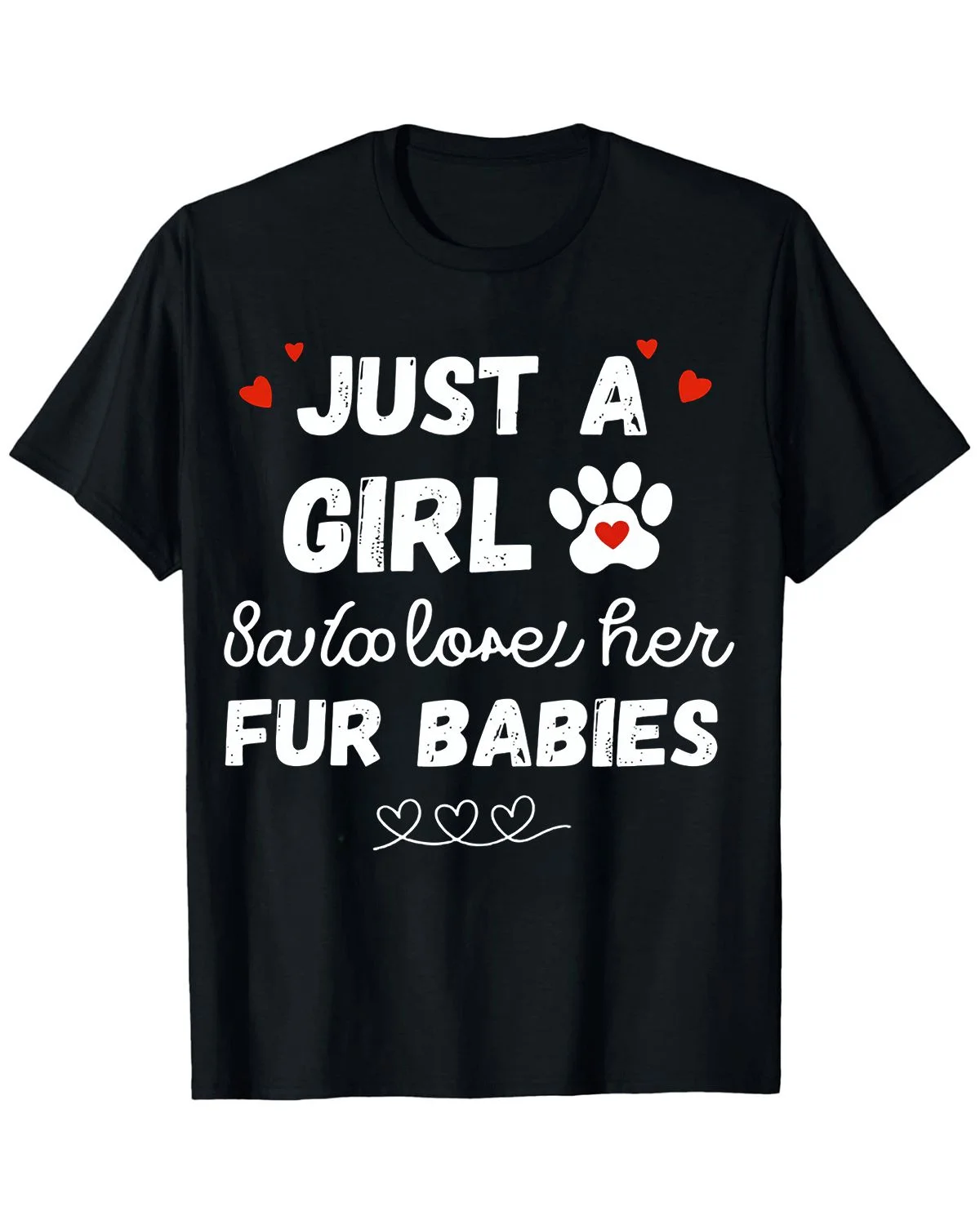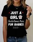 Just A Girl Who Loves Her Fur Babies Summer Cotton Graphic T Shirt-Casual Vintage,Short Sleeve,Soft Fabric,Comfortable Fit