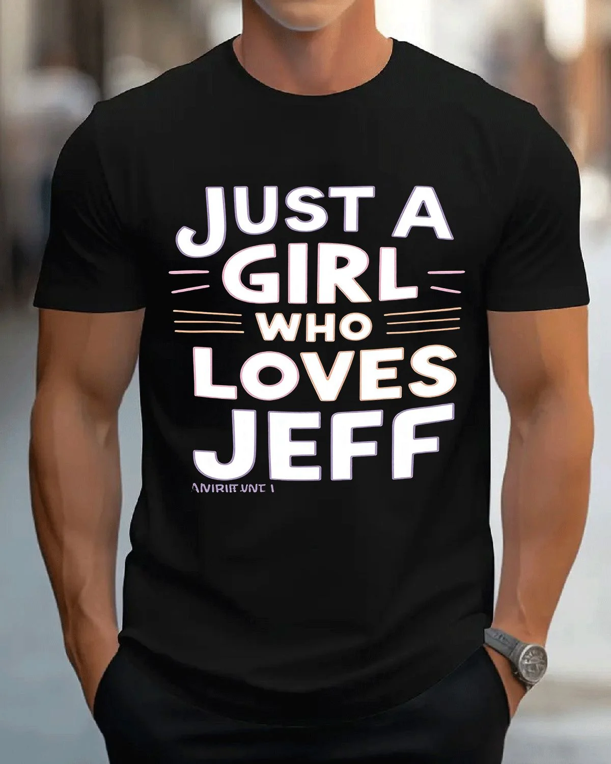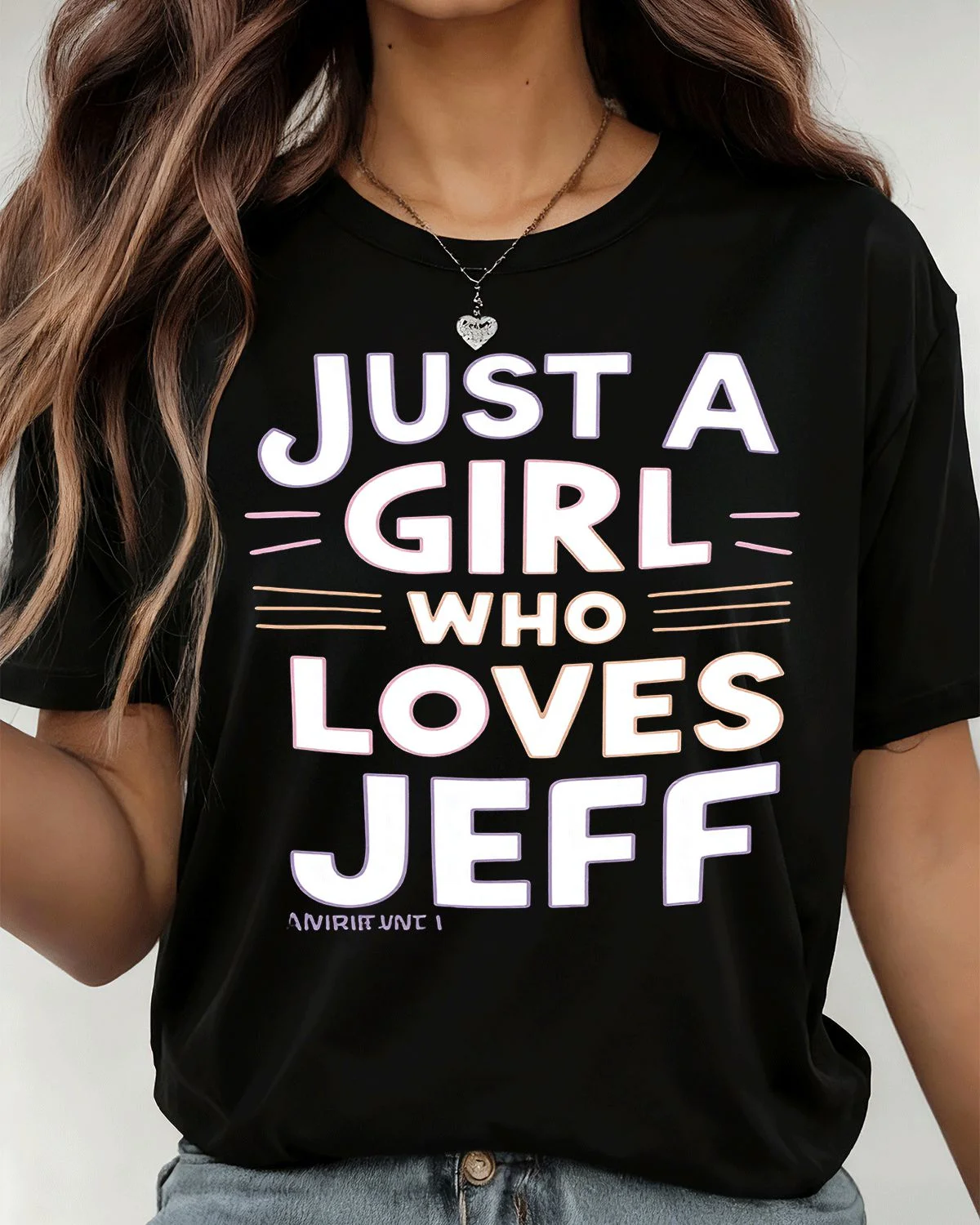 Just a Girl Who Loves Jeff Summer Cotton Graphic T Shirt-Casual Trendy,Short Sleeve,Soft Fabric,Comfortable Fit