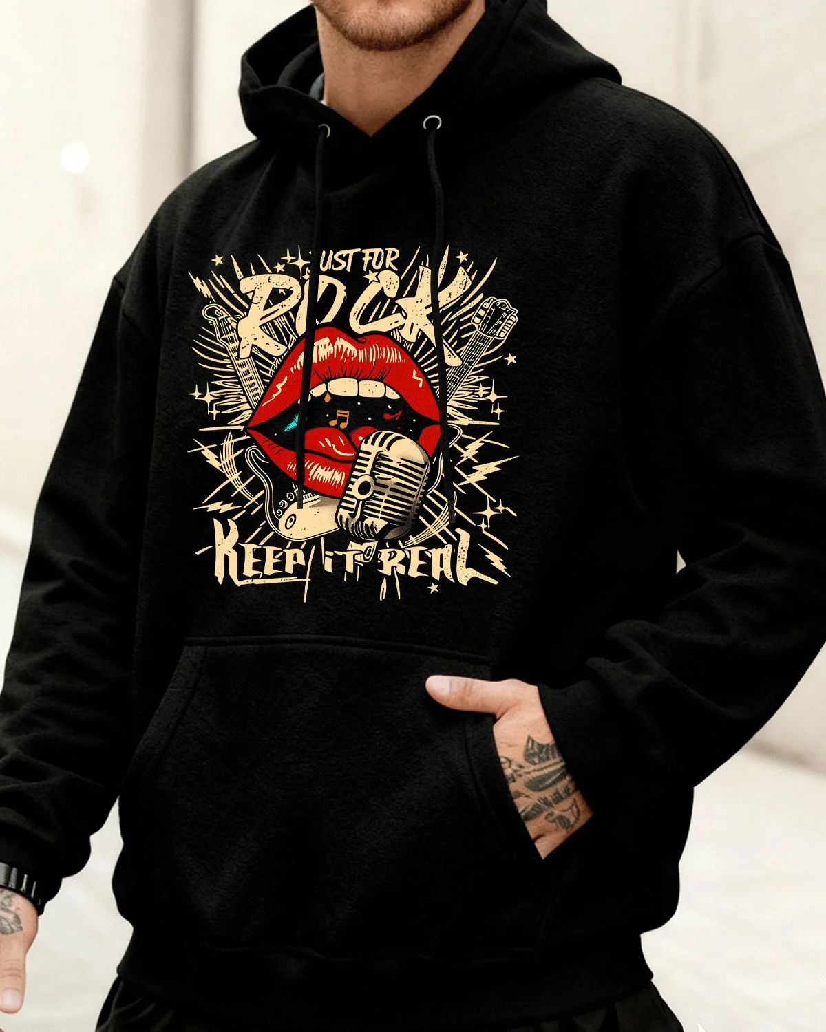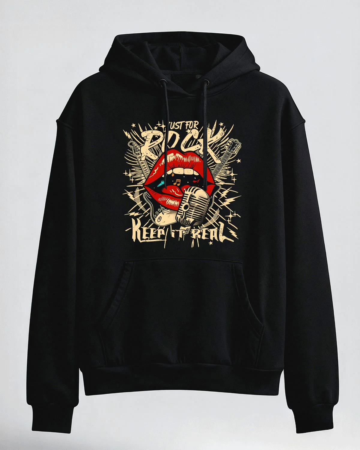 Just For Rock Keep It Real Cozy Cotton Graphic Hoodie with Pocket-Retro Artistic,Long Sleeve,Soft Fabric,Comfortable Fit