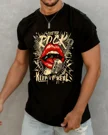 Angry Christmas Cat with Santa Hat and Lights Summer Cotton Graphic T Shirt - Funny Vintage,Short Sleeve,Soft Fabric,Comfortable Fit