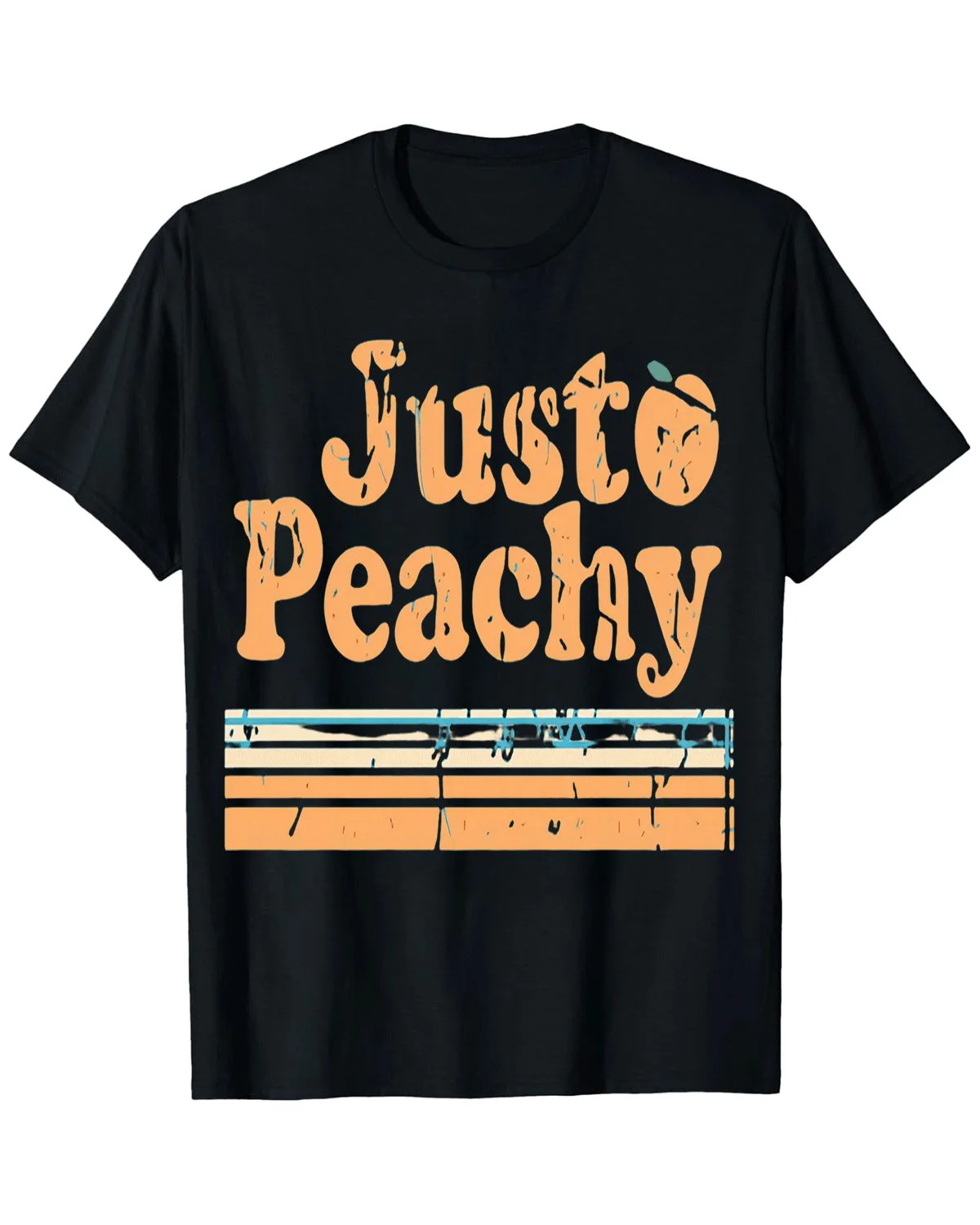 Just Peachy Summer Cotton Graphic T Shirt - Casual Vintage, Short Sleeve, Soft Fabric, Comfortable Fit
