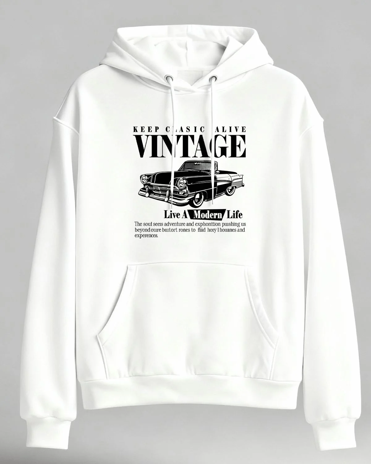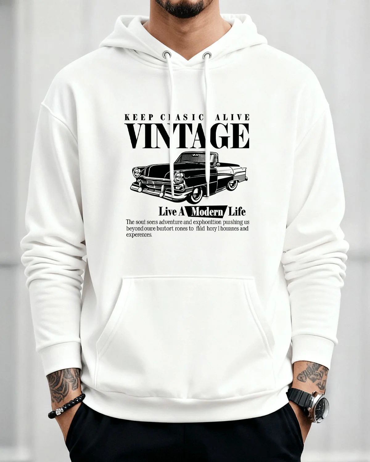 Keep Classics Alive Vintage Car Cozy Cotton Graphic Hoodie with Pocket-Vintage Retro,Long Sleeve,Soft Fabric,Comfortable Fit