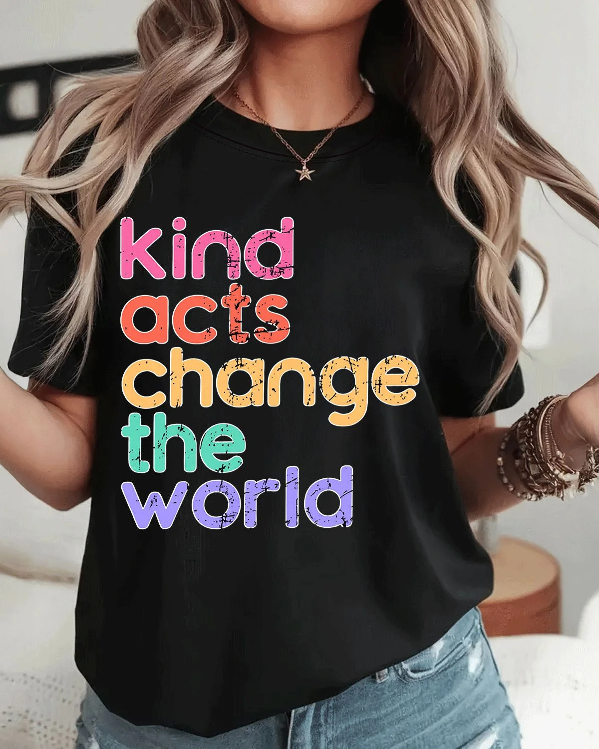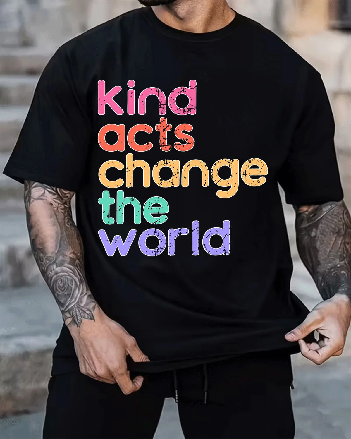 Kind Acts Change the World Summer Cotton Graphic T Shirt-Casual Vintage,Short Sleeve,Soft Fabric,Comfortable Fit