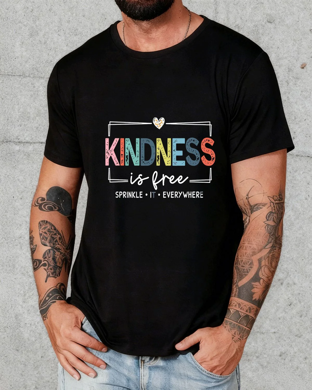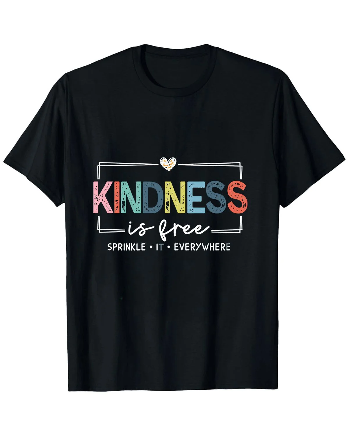 Kindness Is Free Sprinkle It Everywhere Summer Cotton Graphic T Shirt - Casual Vintage,Short Sleeve,Soft Fabric,Comfortable Fit