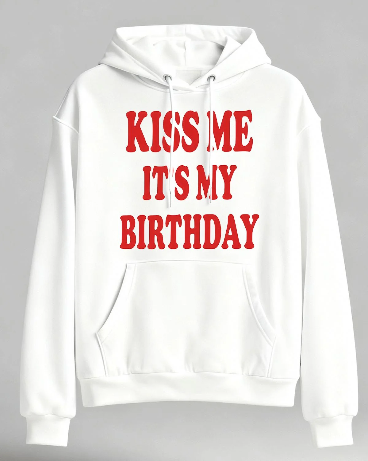 Kiss Me It's My Birthday Cozy Graphic Hoodie for Men and Women - Funny Casual, Long Sleeve, Soft Fabric, Comfortable Fit