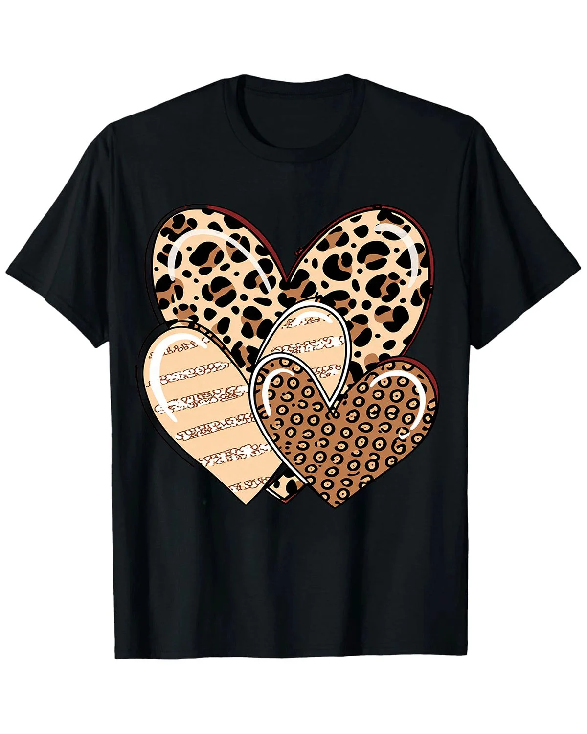 Leopard and Animal Print Hearts Summer Cotton Graphic T Shirt - Casual Chic, Short Sleeve, Soft Fabric, Comfortable Fit