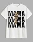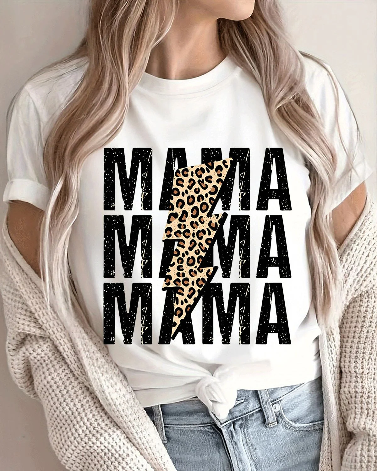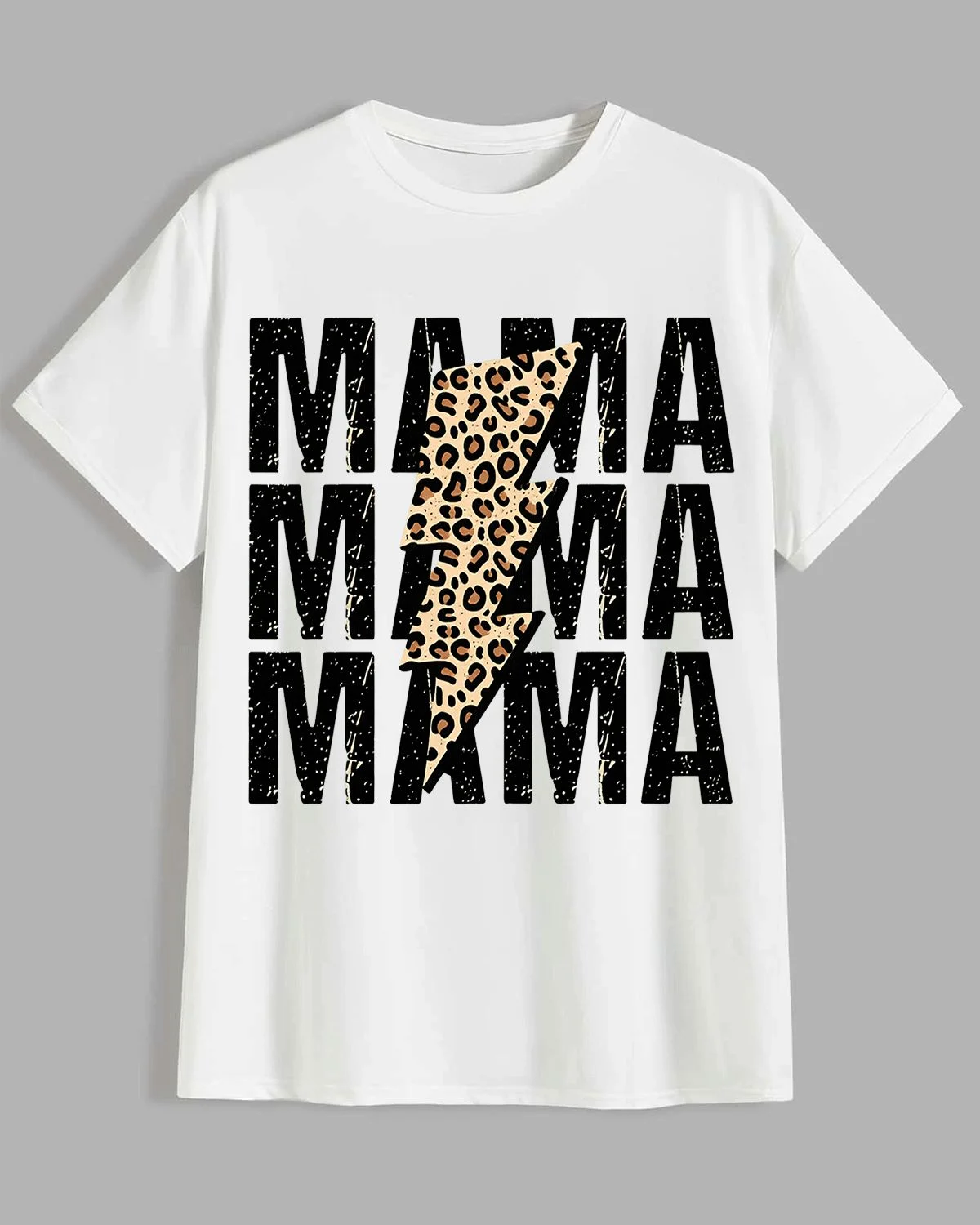 Leopard Lightning Mama Mom Summer Cotton Graphic T Shirt - Casual Distressed, Short Sleeve, Soft Fabric, Comfortable Fit