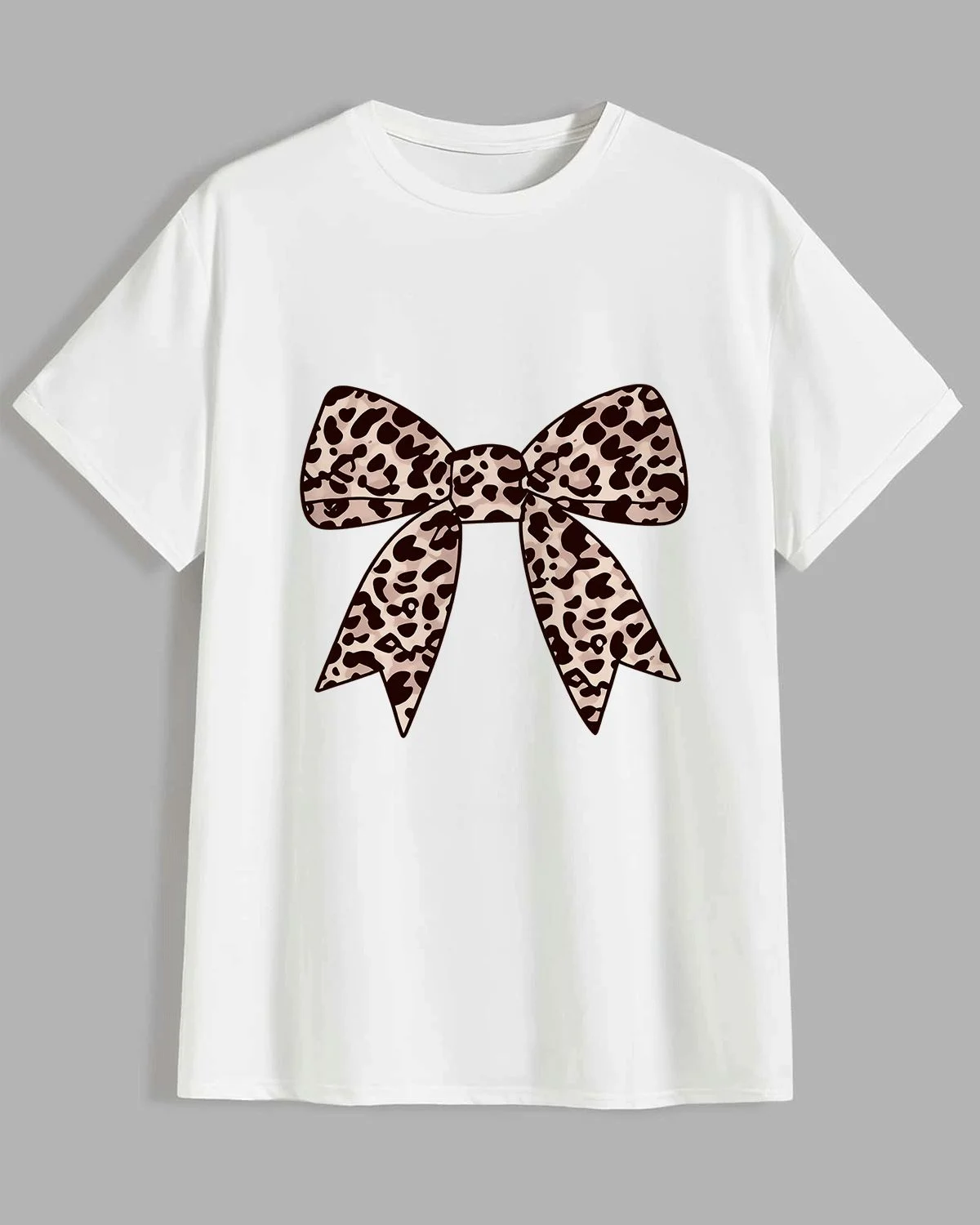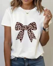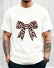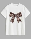 Leopard Print Bow Summer Cotton Graphic T Shirt - Chic Vintage,Short Sleeve,Soft Fabric,Comfortable Fit