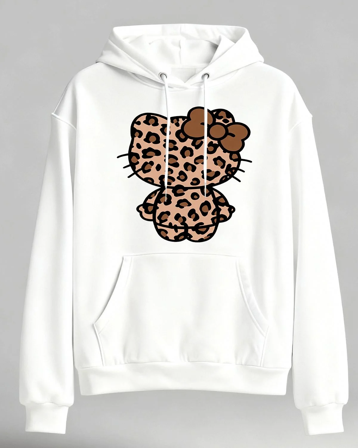 Leopard Print Cat Cozy Graphic Hoodie for Men and Women - Casual Trendy, Long Sleeve, Soft Fabric, Comfortable Fit
