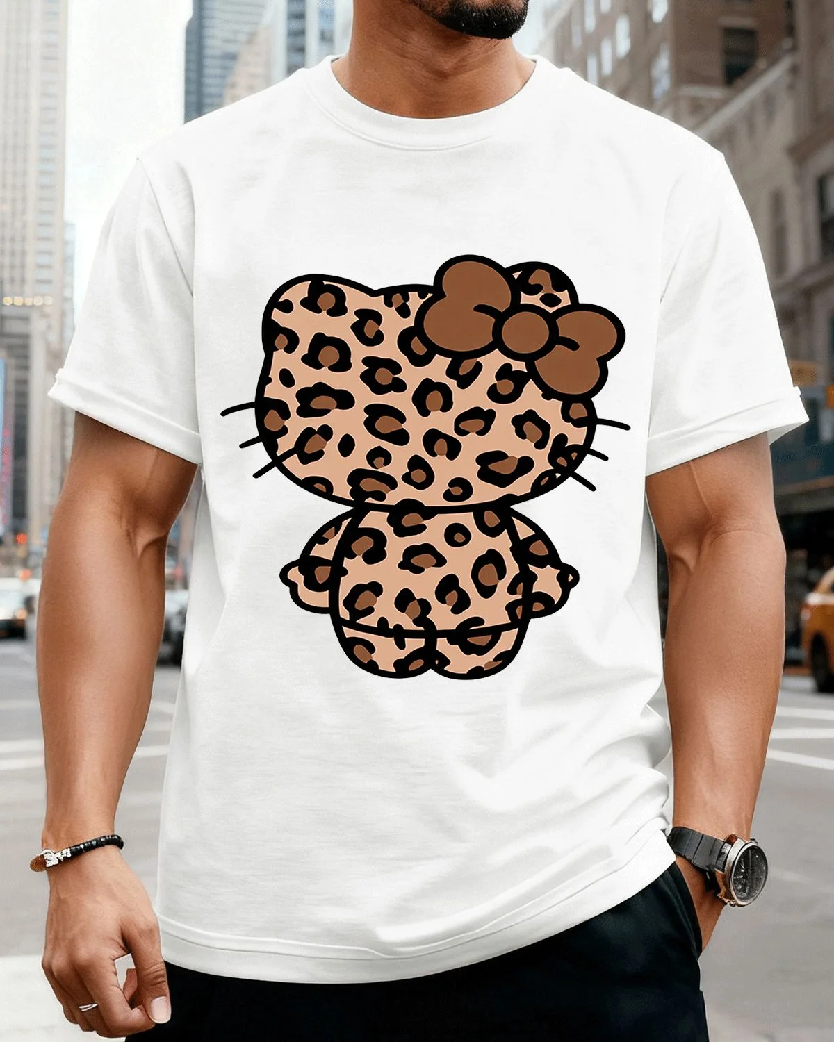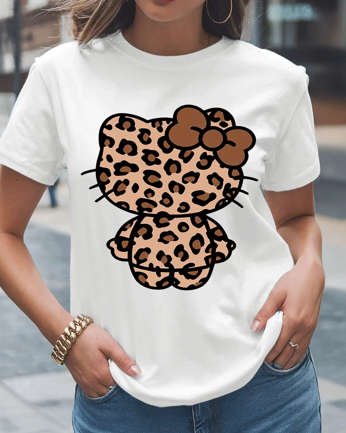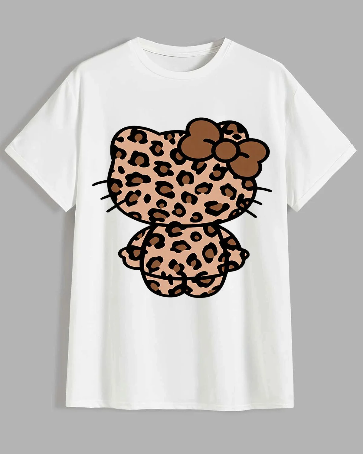 Leopard Print Cat Summer Cotton Graphic T Shirt - Casual Trendy, Short Sleeve, Soft Fabric, Comfortable Fit