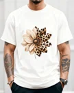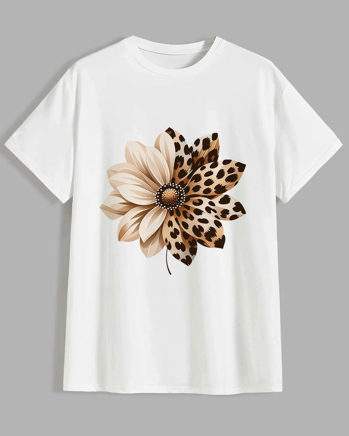 Leopard Print Floral Summer Cotton Graphic T Shirt - Casual Chic,Short Sleeve,Soft Fabric,Comfortable Fit