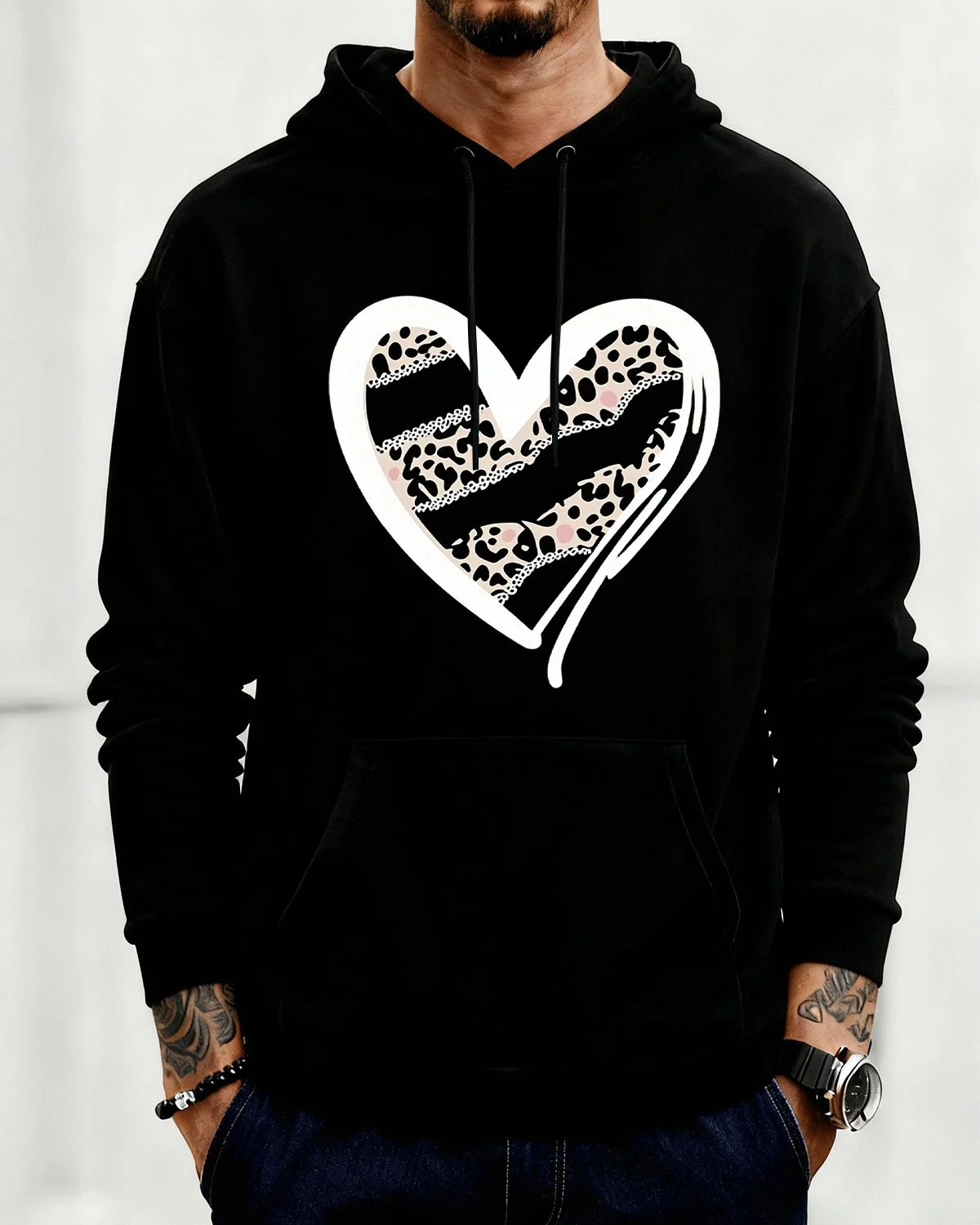 Leopard Print Heart Cozy Graphic Hoodie for Men and Women - Casual Chic, Long Sleeve, Soft Fabric, Comfortable Fit