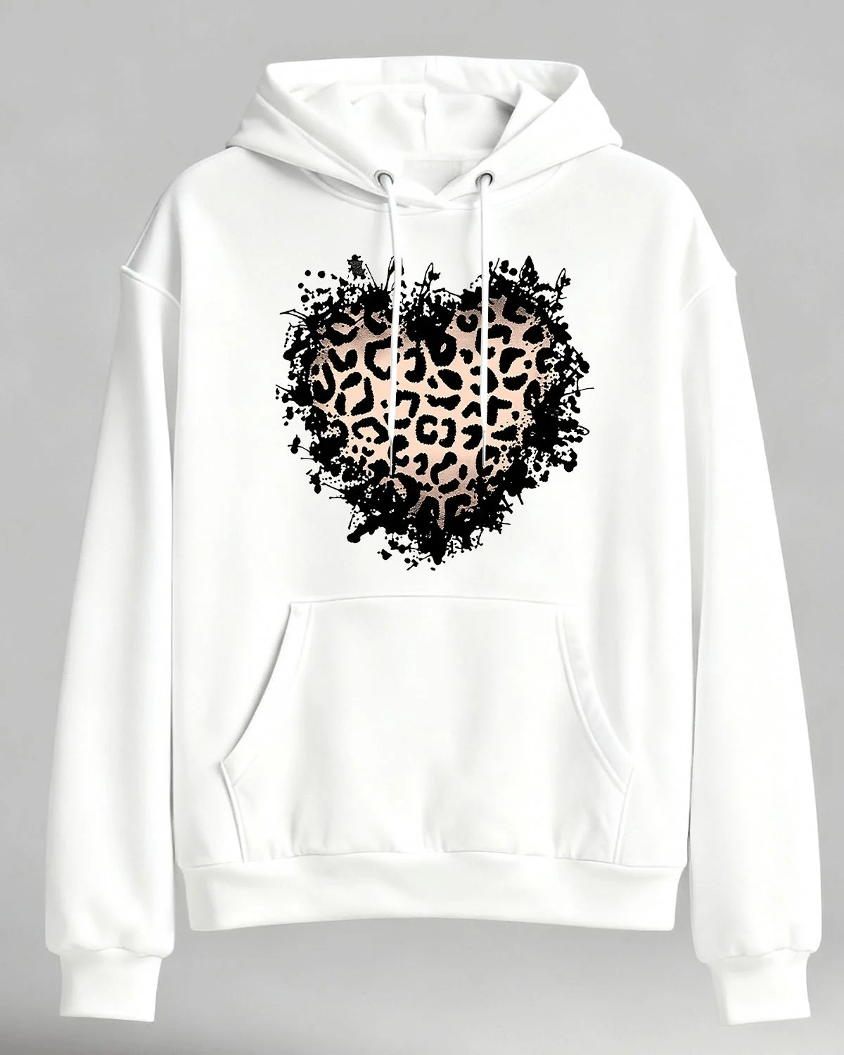 Leopard Print Heart Cozy Graphic Hoodie for Men and Women - Casual Chic, Long Sleeve, Soft Fabric, Comfortable Fit