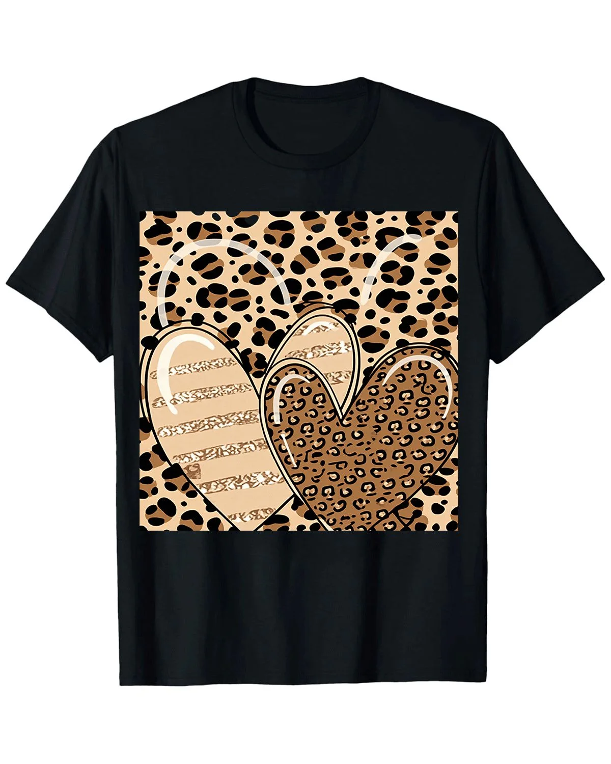 Leopard Print Hearts Summer Cotton Graphic T Shirt - Casual Chic, Short Sleeve, Soft Fabric, Comfortable Fit