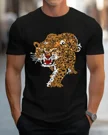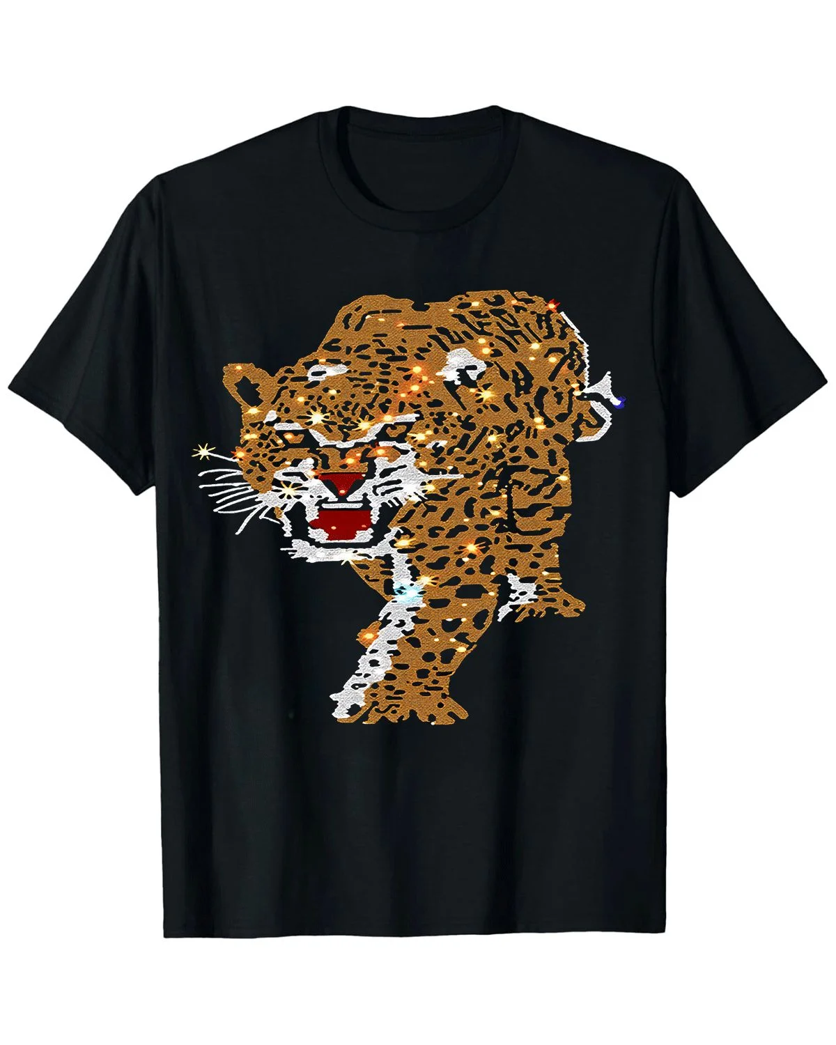 Leopard Walking with Sparkling Lights Summer Cotton Graphic T Shirt-Vintage Artistic,Short Sleeve,Soft Fabric,Comfortable Fit