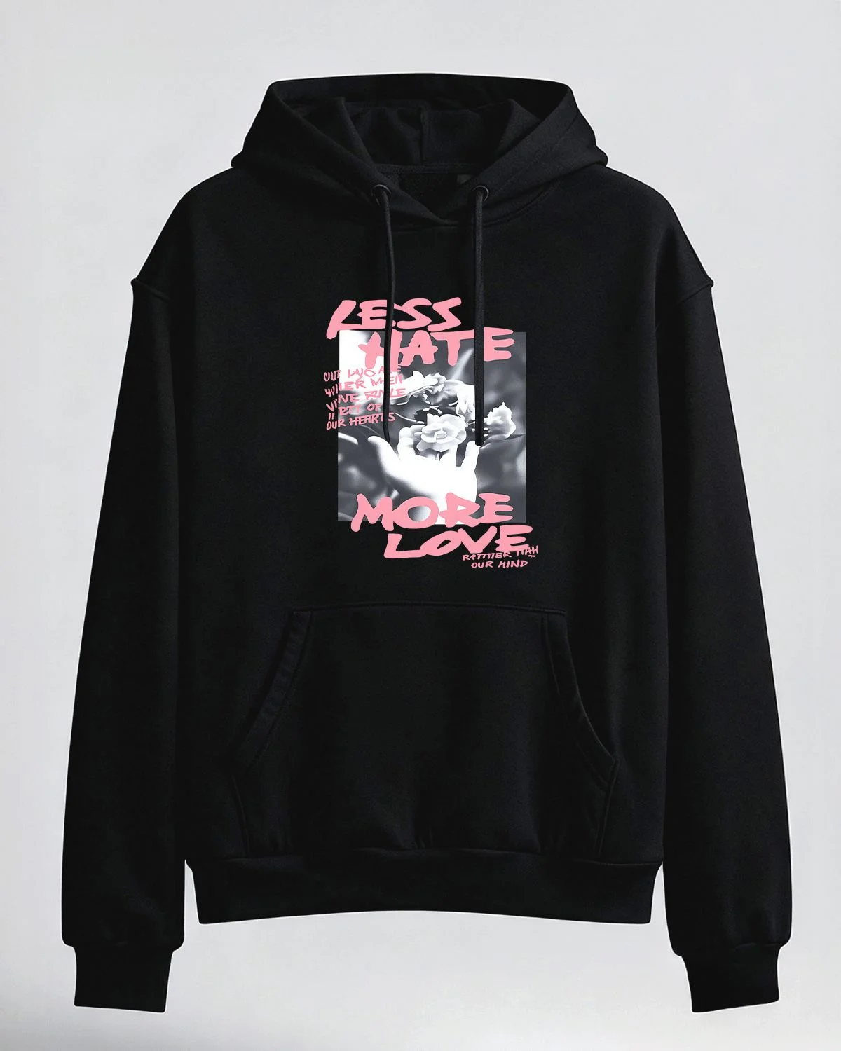 Less Hate More Love Cozy Cotton Graphic Hoodie with Pocket-Casual Vintage,Long Sleeve,Soft Fabric,Comfortable Fit