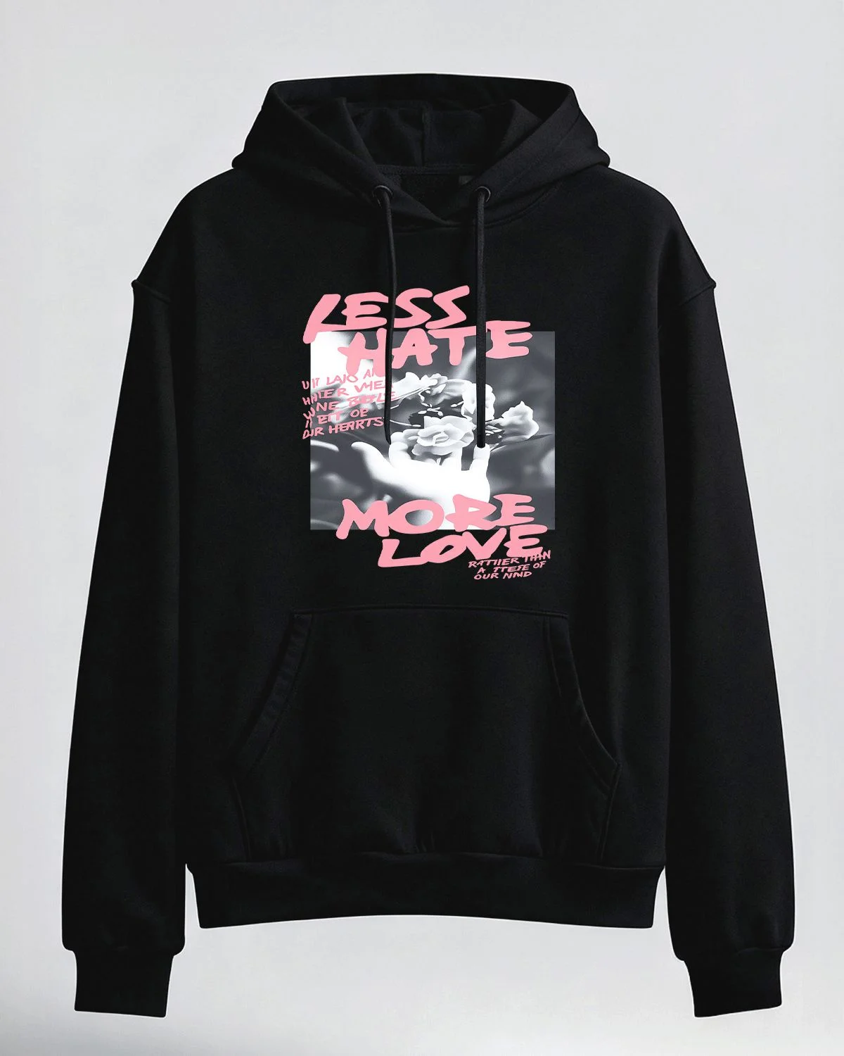 Less Hate More Love Floral Art Cozy Cotton Graphic Hoodie with Pocket-Artistic Vintage,Long Sleeve,Soft Fabric,Comfortable Fit