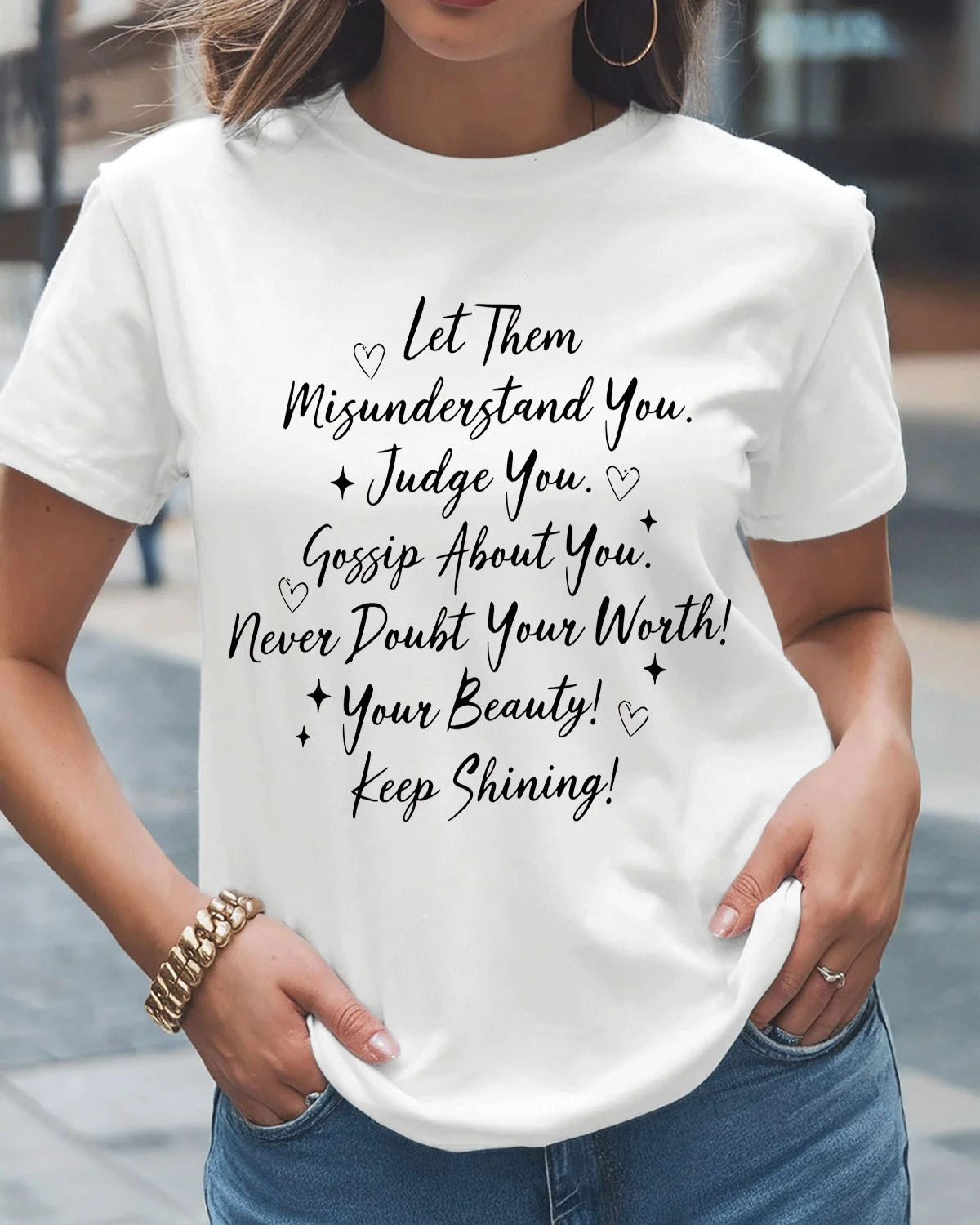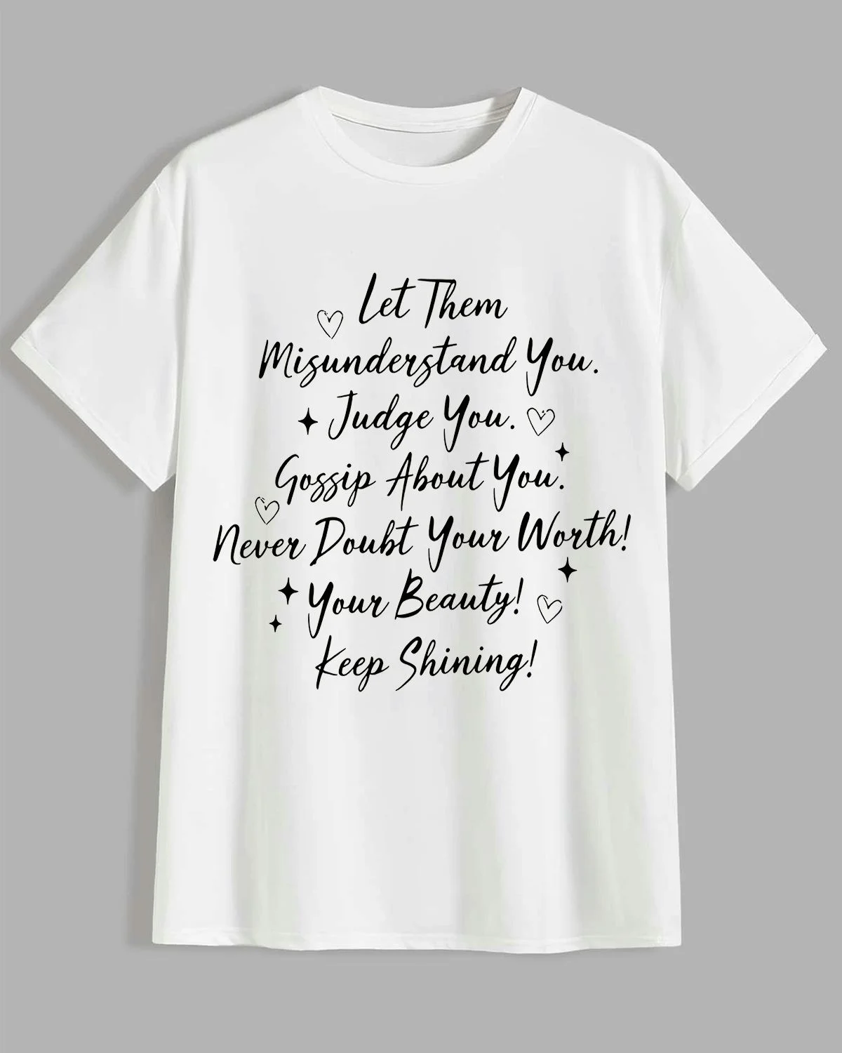 Let Them Misunderstand You Keep Shining Summer Cotton Graphic T Shirt - Casual Inspirational, Short Sleeve, Soft Fabric, Comfortable Fit