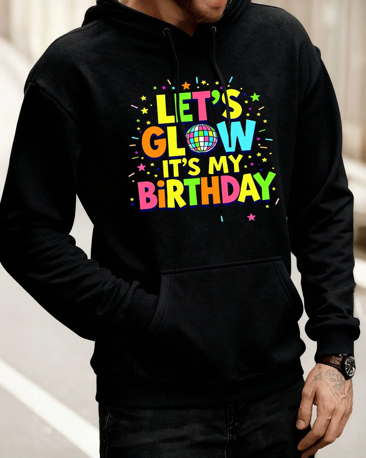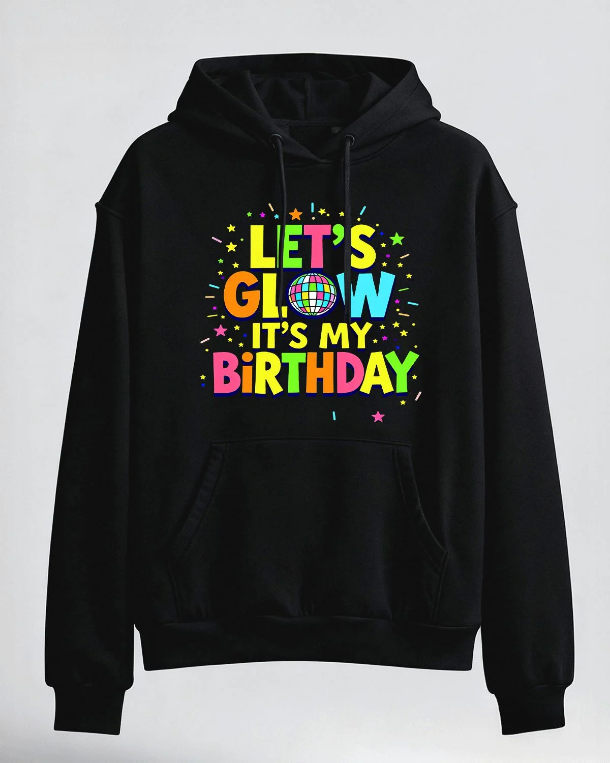 Let's Glow It's My Birthday Cozy Graphic Hoodie for Men and Women - Funny Graphic, Long Sleeve, Soft Fabric, Comfortable Fit