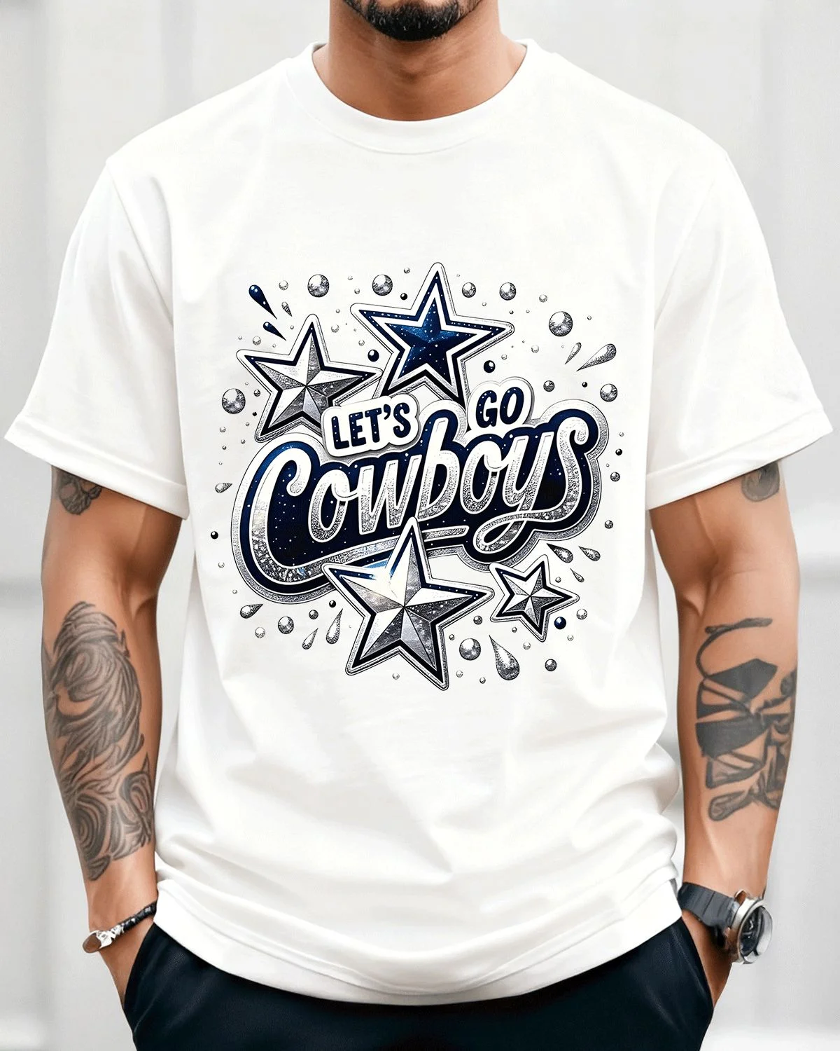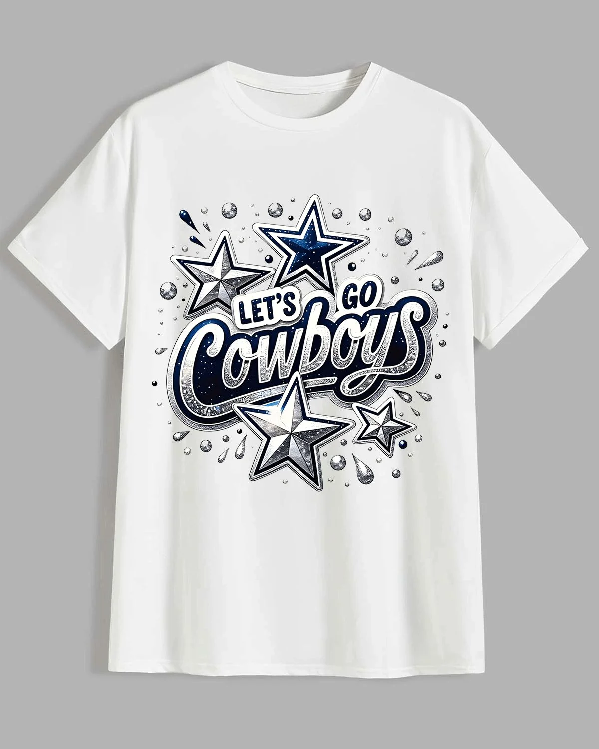 Let's Go Cowboys Star Design Summer Cotton Graphic T Shirt - Casual Sporty,Short Sleeve,Soft Fabric,Comfortable Fit