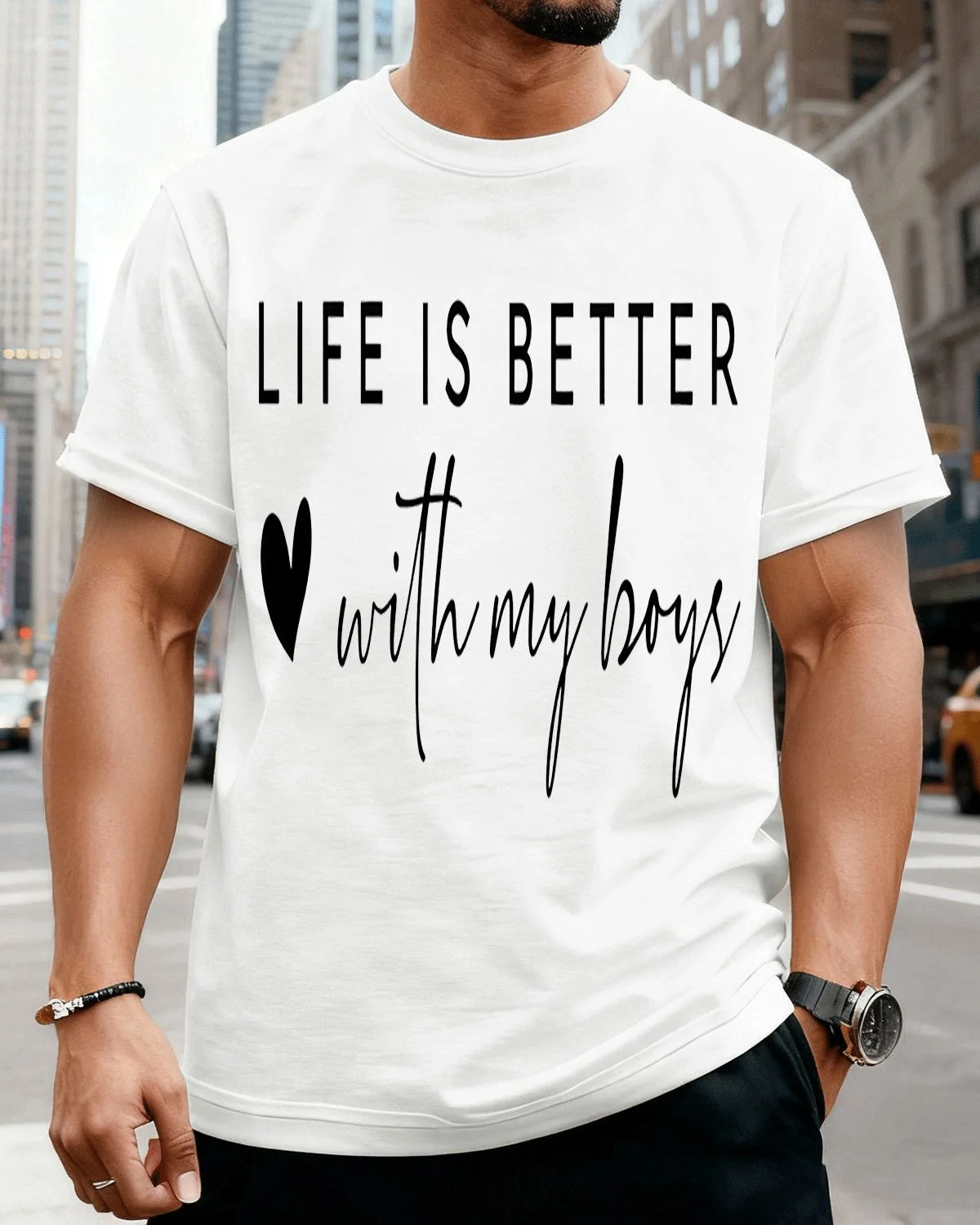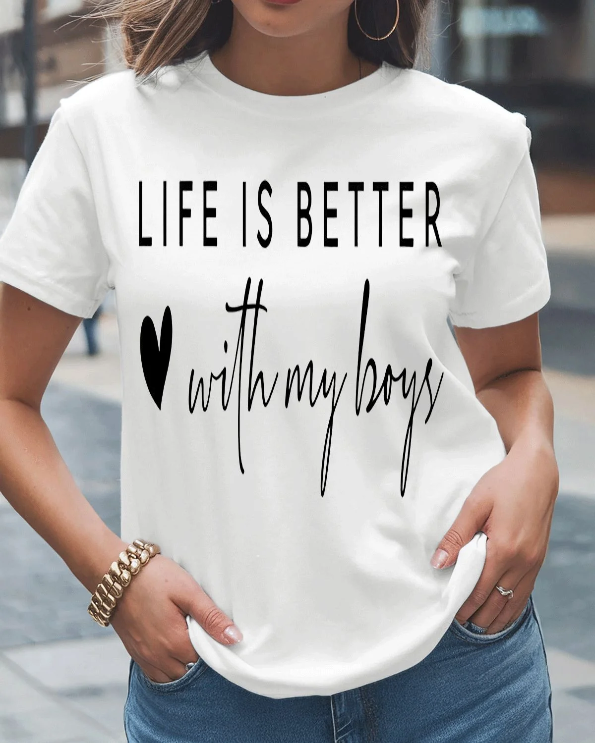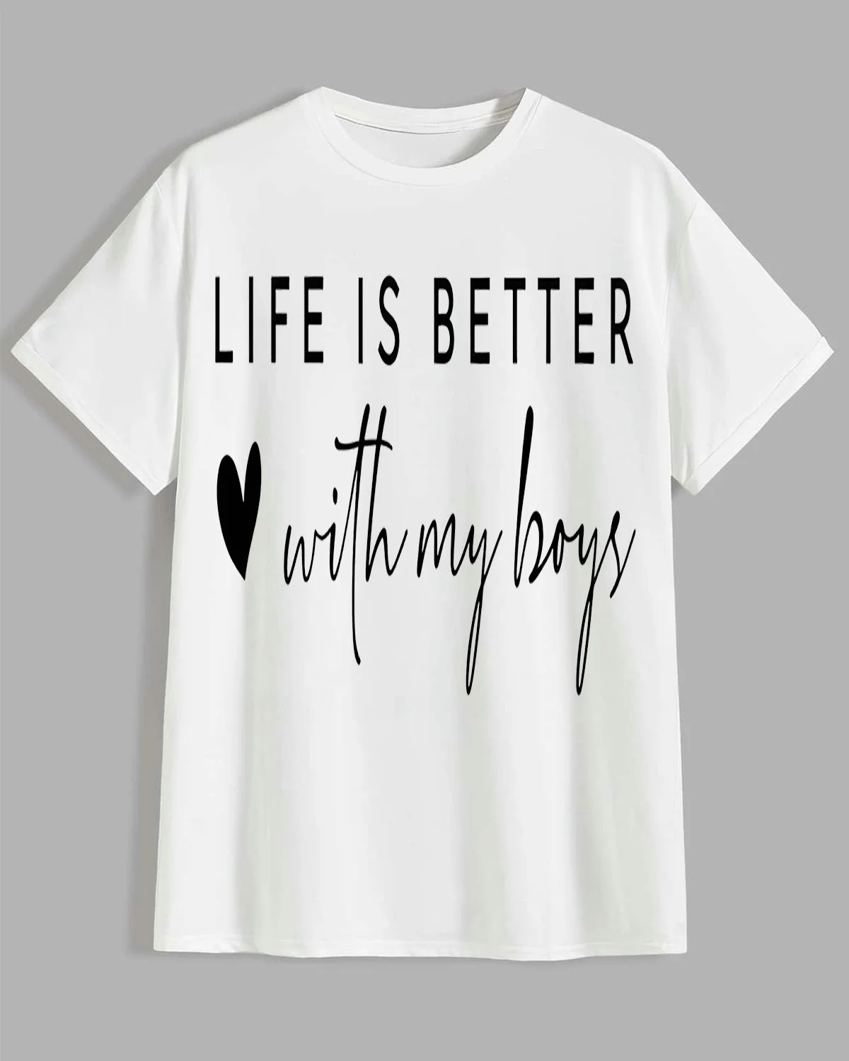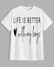 Life Is Better With My Boys Mom Summer Cotton Graphic T Shirt - Casual Chic, Short Sleeve, Soft Fabric, Comfortable Fit