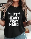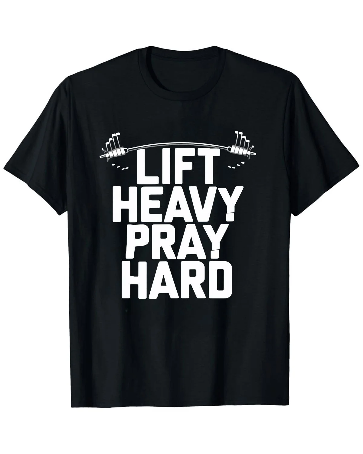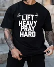 Lift Heavy Pray Hard Summer Cotton Graphic T Shirt - Sporty Casual,Short Sleeve,Soft Fabric,Comfortable Fit
