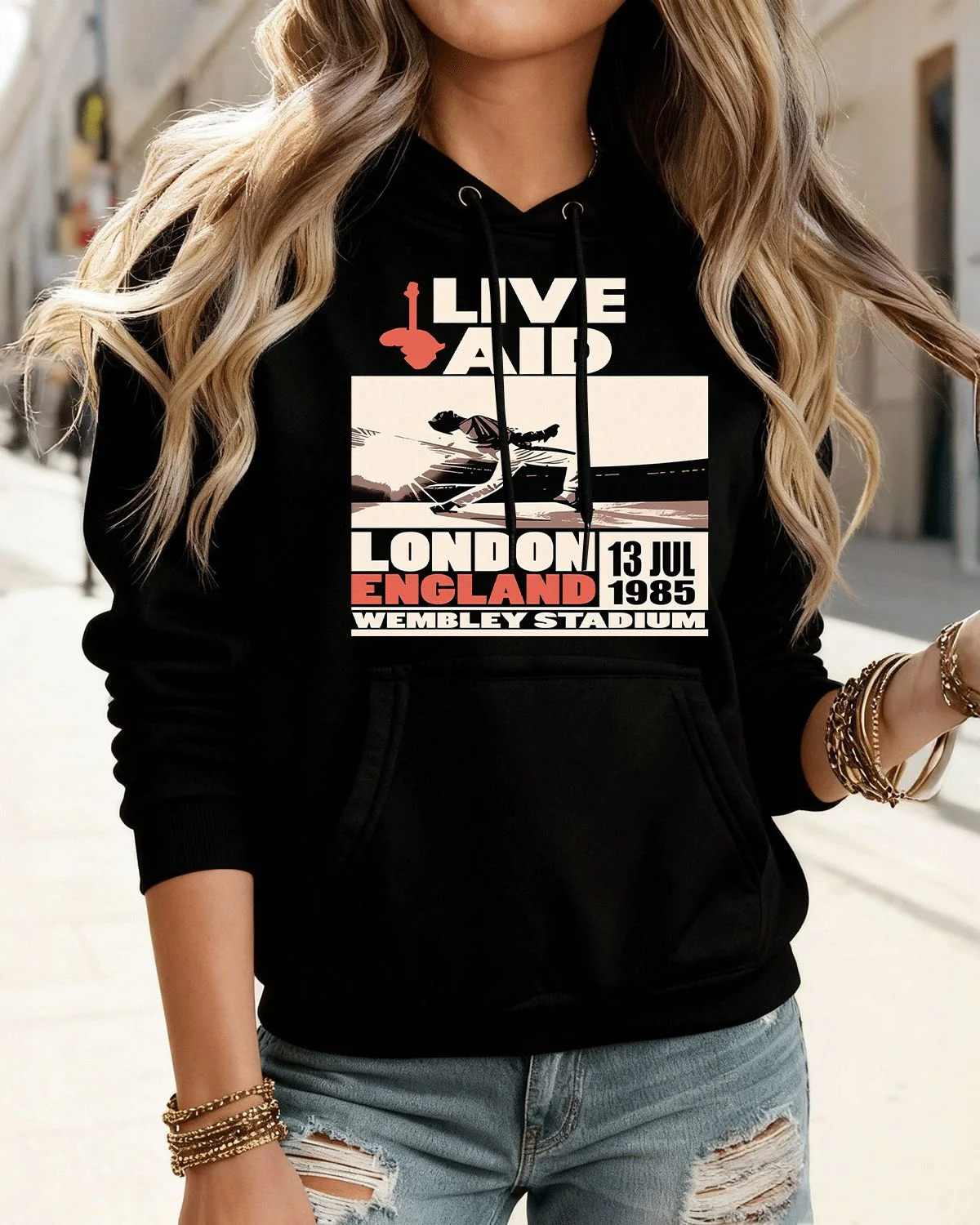 Live Aid London England 1985 Cozy Graphic Hoodie for Men and Women - Vintage Retro, Long Sleeve, Soft Fabric, Comfortable Fit